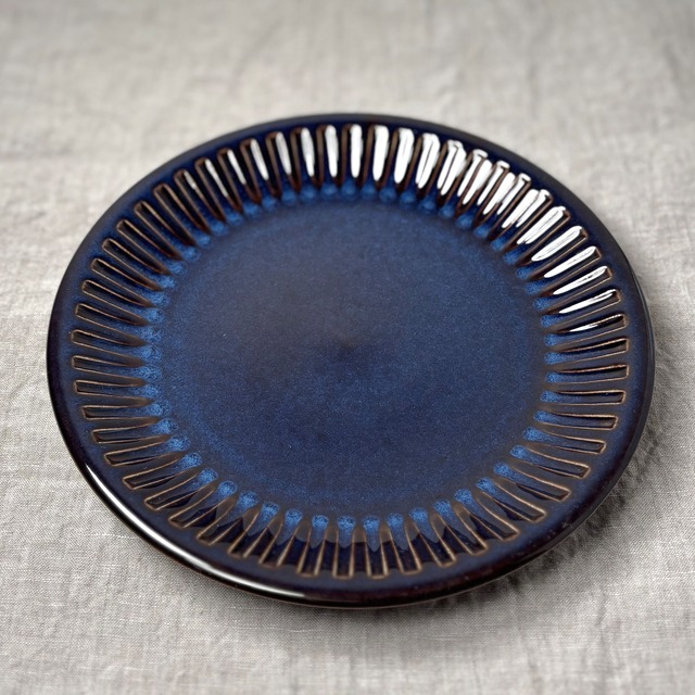 ▶︎商品説明 1966年から1977年にかけて、スウェーデンのゲフレ窯で作られたKosmos(コスモス)シリーズの19cmプレートです。 ゲフレ/ウプサラエクビーのトップデザイナーであった、※Berit Ternell(ベリット・ターナー)によってデザインされました。 このコスモスシリーズは1967年にオランダ・ユトレヒトの大会で優勝をおさめていて、数々の賞を受賞した彼女の代表作でもあります。 ブルーとブラウンが混ざり合った独特の色合いが大変美しく、深みのある一品です。釉薬のかかり方によって色合いや表情がそれぞれ違い、どれ一つ同じものはないといったところも、このシリーズの魅力です。 ケーキ皿やパン皿、取り皿など様々な用途に使い勝手の良いサイズ感です。 カップ&ソーサーとともにトリオでお使いいただくのもおすすめです。 ※Berit Ternell(ベリット・ターナー) 20世紀のスウェーデンを代表する陶芸デザイナー。1929年に生まれ、1950年代から1970年代にかけて、ゲフレのトップデザイナーの一人として活躍しました。 彼女の作品は、その独特の色彩感覚と自然や植物をモチーフにした温かみのあるデザインで、シンプルながらも洗練された印象です。 代表的なシリーズは、「Kosmos/コスモス」、「Fontana/フォンタナ」。 *ゲフレ窯は、1910年創業の、良質なテーブルウェアを作ってきたスウェーデンの陶磁器メーカーです。 1935年、Upsala Ekeby(ウプサラエクビー)に買収されましたが、1979年までゲフレブランドの陶磁器を作り続けました。 ▶︎デザイナー Berit Ternell/ベリット・ターナー ▶メーカー Gefle(ゲフレ) Upsala Ekeby(ウプサラエクビー) ▶︎製造国 スウェーデン ▶サイズ Φ約19cm×2.3cm ▶︎コンディションランク:B 艶もあり大変良好なヴィンテージコンディションです。 光にかざすと若干の小傷やスレが見られます。 裏に支柱跡3箇所と支柱を外した時にできた釉薬の剥がれがありますが、いずれも製造過程でできたものです。 【コンディションランク 】 A デットストックなどの未使用品でダメージがほとんど無く新品同様のもの。 B 光に当てればわかるほどの少しの小傷やペイントロスなどあるが全体的に綺麗な状態のもの。 C 小傷などあり全体的に使用感は感じられるが、深い傷など目立つダメージがないもの。 D 光に当てなくてもダメージを確認することができるが、使用上問題のある割れや欠けなどはないもの。 E 目立つ傷や擦れ、割れや欠けなどがあり使用に問題があるもの。 ------------------------------------------------ ※送料60サイズ 全国一律760円 ※複数の商品をご購入された場合、同梱発送させていただく箱のサイズによっては多少の価格調整ができる場合がございますので、よろしければ、商品ページの「質問する」よりご購入前に一度ご相談ください。