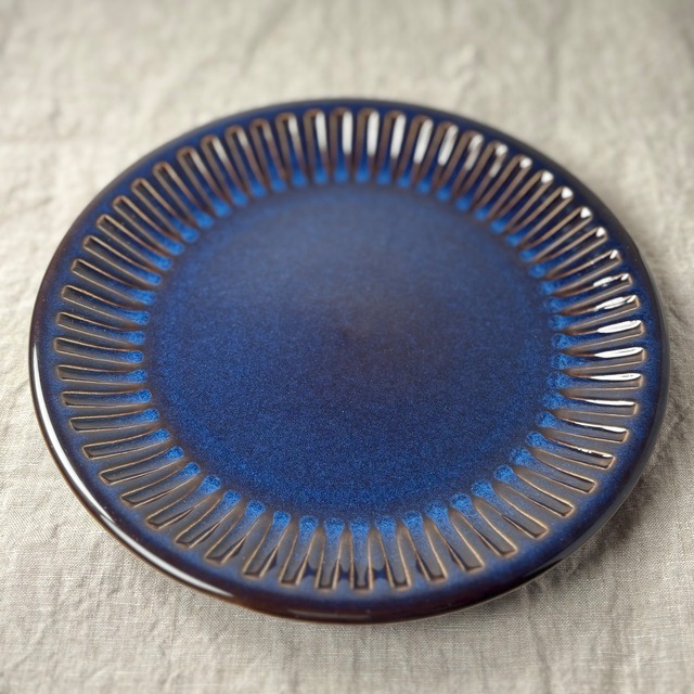 ▶︎商品説明 1966年から1977年にかけて、スウェーデンのゲフレ窯で作られたKosmos(コスモス)シリーズの19cmプレートです。 ゲフレ/ウプサラエクビーのトップデザイナーであった、※Berit Ternell(ベリット・ターナー)によってデザインされました。 このコスモスシリーズは1967年にオランダ・ユトレヒトの大会で優勝をおさめていて、数々の賞を受賞した彼女の代表作でもあります。 ブルーとブラウンが混ざり合った独特の色合いが大変美しく、深みのある一品です。釉薬のかかり方によって色合いや表情がそれぞれ違い、どれ一つ同じものはないといったところも、このシリーズの魅力です。 ケーキ皿やパン皿、取り皿など様々な用途に使い勝手の良いサイズ感です。 カップ&ソーサーとともにトリオでお使いいただくのもおすすめです。 ※Berit Ternell(ベリット・ターナー) 20世紀のスウェーデンを代表する陶芸デザイナー。1929年に生まれ、1950年代から1970年代にかけて、ゲフレのトップデザイナーの一人として活躍しました。 彼女の作品は、その独特の色彩感覚と自然や植物をモチーフにした温かみのあるデザインで、シンプルながらも洗練された印象です。 代表的なシリーズは、「Kosmos/コスモス」、「Fontana/フォンタナ」。 *ゲフレ窯は、1910年創業の、良質なテーブルウェアを作ってきたスウェーデンの陶磁器メーカーです。 1935年、Upsala Ekeby(ウプサラエクビー)に買収されましたが、1979年までゲフレブランドの陶磁器を作り続けました。 ▶︎デザイナー Berit Ternell/ベリット・ターナー ▶メーカー Gefle(ゲフレ) Upsala Ekeby(ウプサラエクビー) ▶︎製造国 スウェーデン ▶サイズ Φ約19cm×2.3cm ▶︎コンディションランク:B 艶もあり大変良好なヴィンテージコンディションです。 光にかざすと若干の小傷やスレが見られます。 裏に支柱跡が3箇所と側面に少し凹んだ部分があります(上から釉薬がかかっています)が、いずれも製造過程でできたものです。 【コンディションランク 】 A デットストックなどの未使用品でダメージがほとんど無く新品同様のもの。 B 光に当てればわかるほどの少しの小傷やペイントロスなどあるが全体的に綺麗な状態のもの。 C 小傷などあり全体的に使用感は感じられるが、深い傷など目立つダメージがないもの。 D 光に当てなくてもダメージを確認することができるが、使用上問題のある割れや欠けなどはないもの。 E 目立つ傷や擦れ、割れや欠けなどがあり使用に問題があるもの。 ------------------------------------------------ ※送料60サイズ 全国一律760円 ※複数の商品をご購入された場合、同梱発送させていただく箱のサイズによっては多少の価格調整ができる場合がございますので、よろしければ、商品ページの「質問する」よりご購入前に一度ご相談ください。