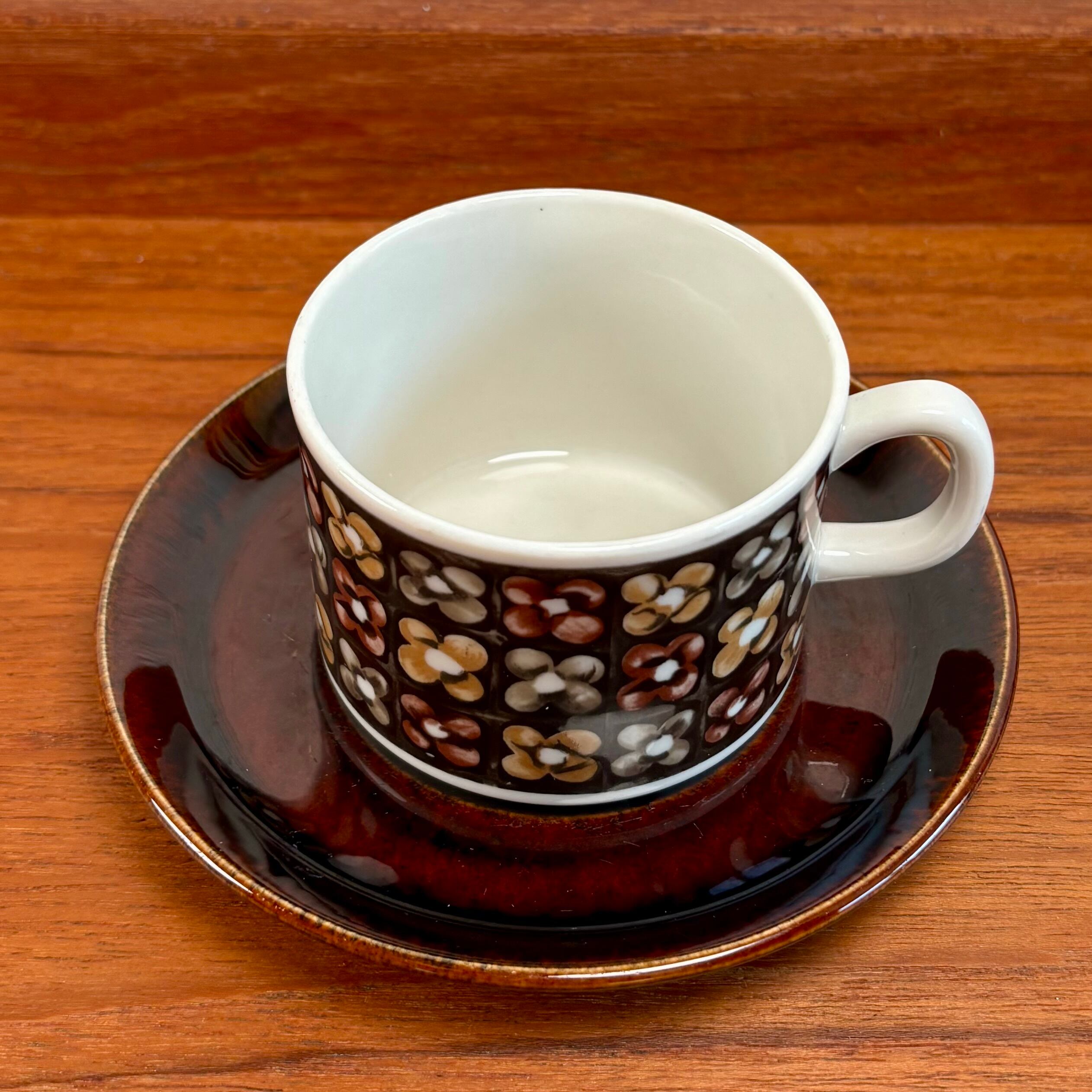 このコーヒーカップは、1960年代から1970年代の作品です。洗練されたデザインと優れた機能性を兼ね備えています。釉薬が施され、艶やかな仕上がりは、コーヒーを愉しむ時間を特別なものにしてくれます。