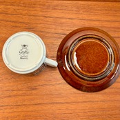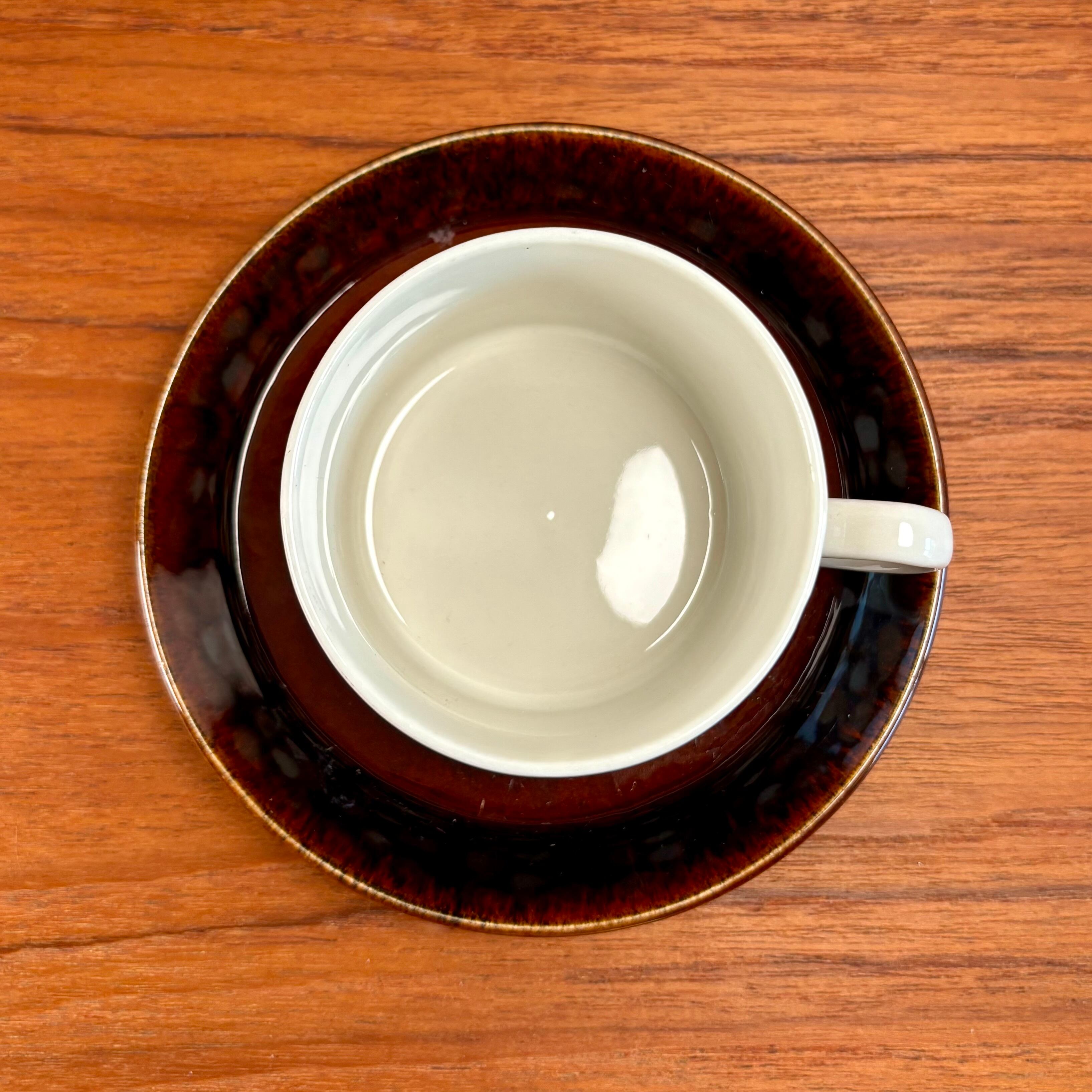 カップは、手に収まる絶妙なサイズ感で、コーヒーの香りを楽しむのにぴったりです。また、ソーサーは美しい飴色で、お菓子を添えても映えるでしょう。