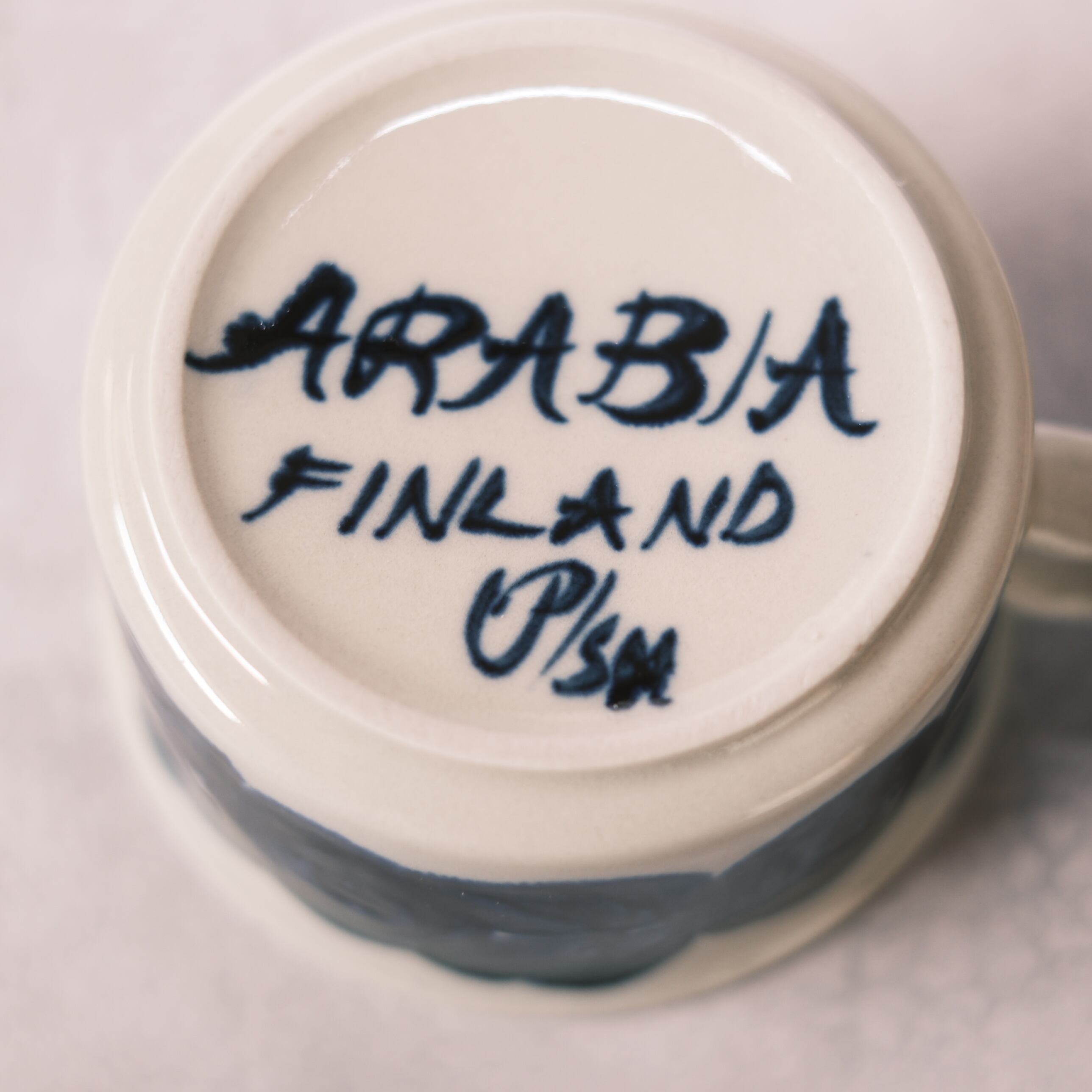 カップの裏側には、ウラプロコッペのイニシャル『UP』と、絵付師のイニシャルが手描きで書かれています。