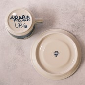 カップの裏側には、ウラプロコッペのイニシャル『UP』と、絵付師のイニシャルが手描きで書かれています。