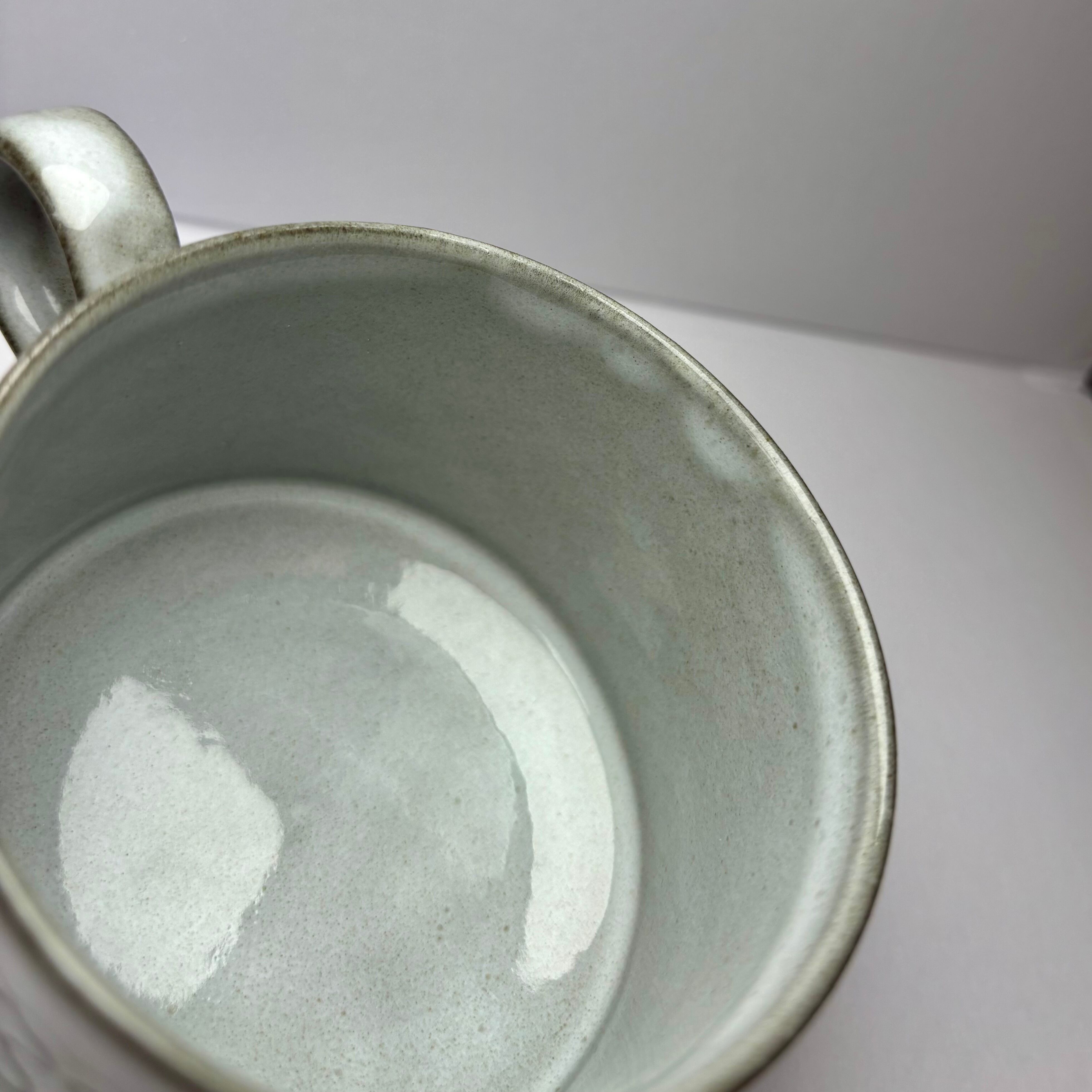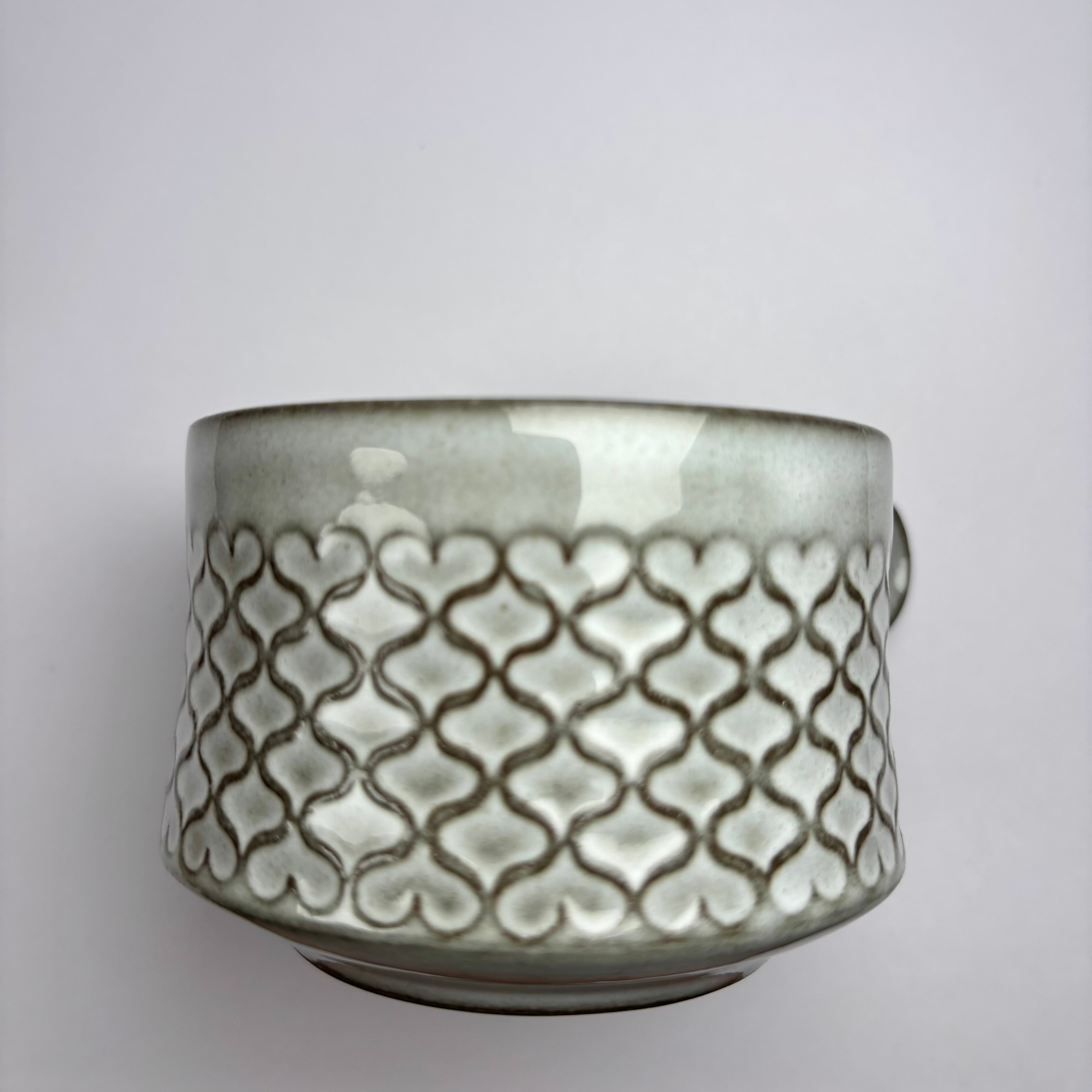 全体に釉薬がかかって艶もあり、洗練されたフォルムとハートのモチーフが美しいデザインで、表面が浮き出して見え、凛とした佇まいの中に可愛らしさも感じます。