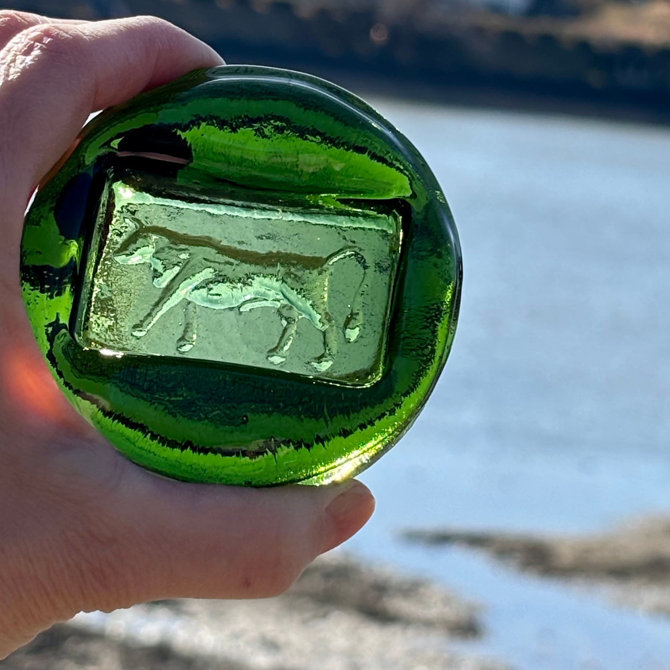 様々な絵柄や色がありますが、こちらは今にもとっとこ歩き出しそうな牛が内側に型押しされています。