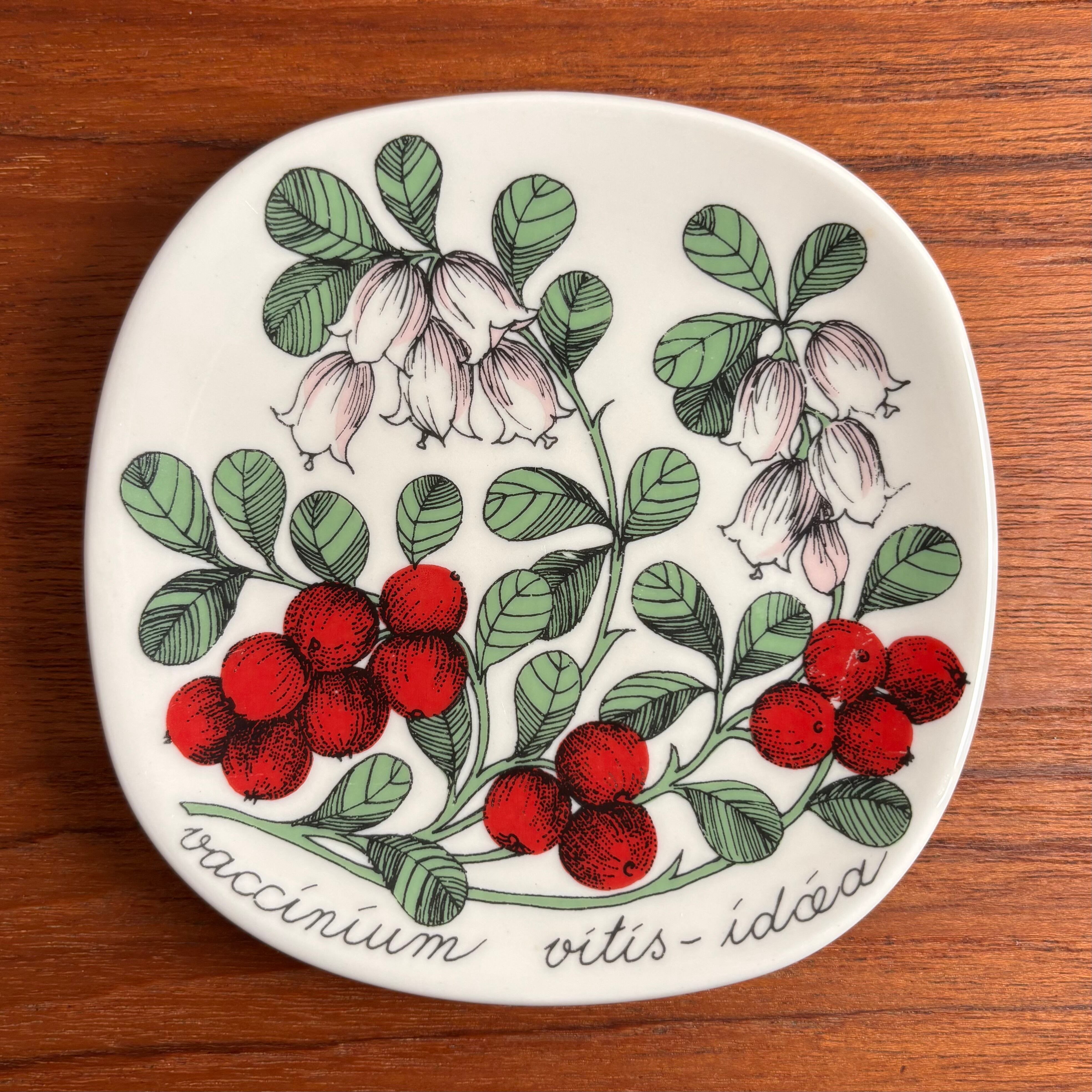 フィンランドのARABIA社で、1978年〜1989年にかけて作られたBotanicaシリーズの中の「森の果実シリーズ」全12種のうちの一つ、1982年に発表された「コケモモ(別名リンゴンベリー)」です。