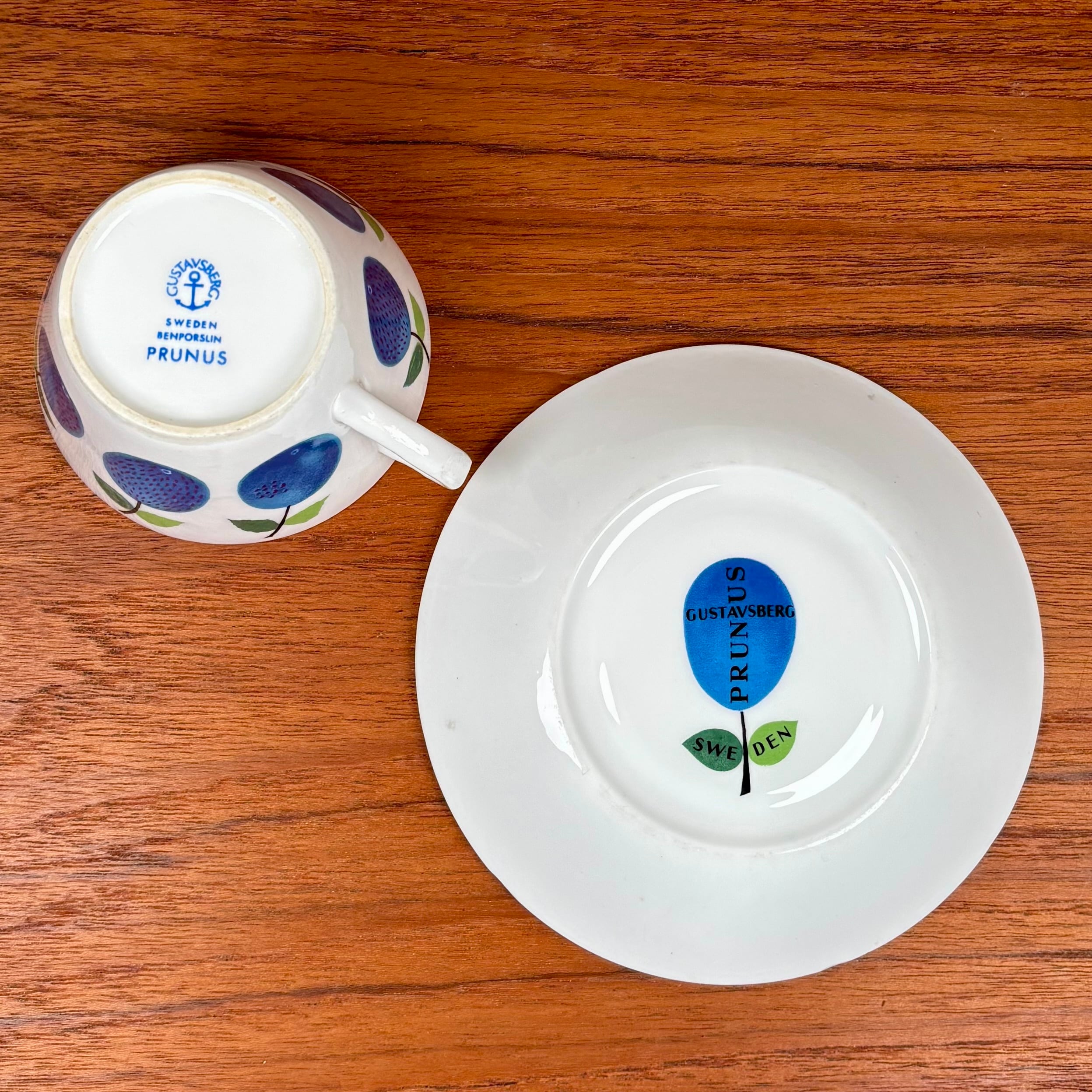 1962年〜1974年にかけて、スウェーデンのグスタフスベリ社で作られた、Prunus/プルーヌスシリーズのコーヒーカップ&ソーサーです。
