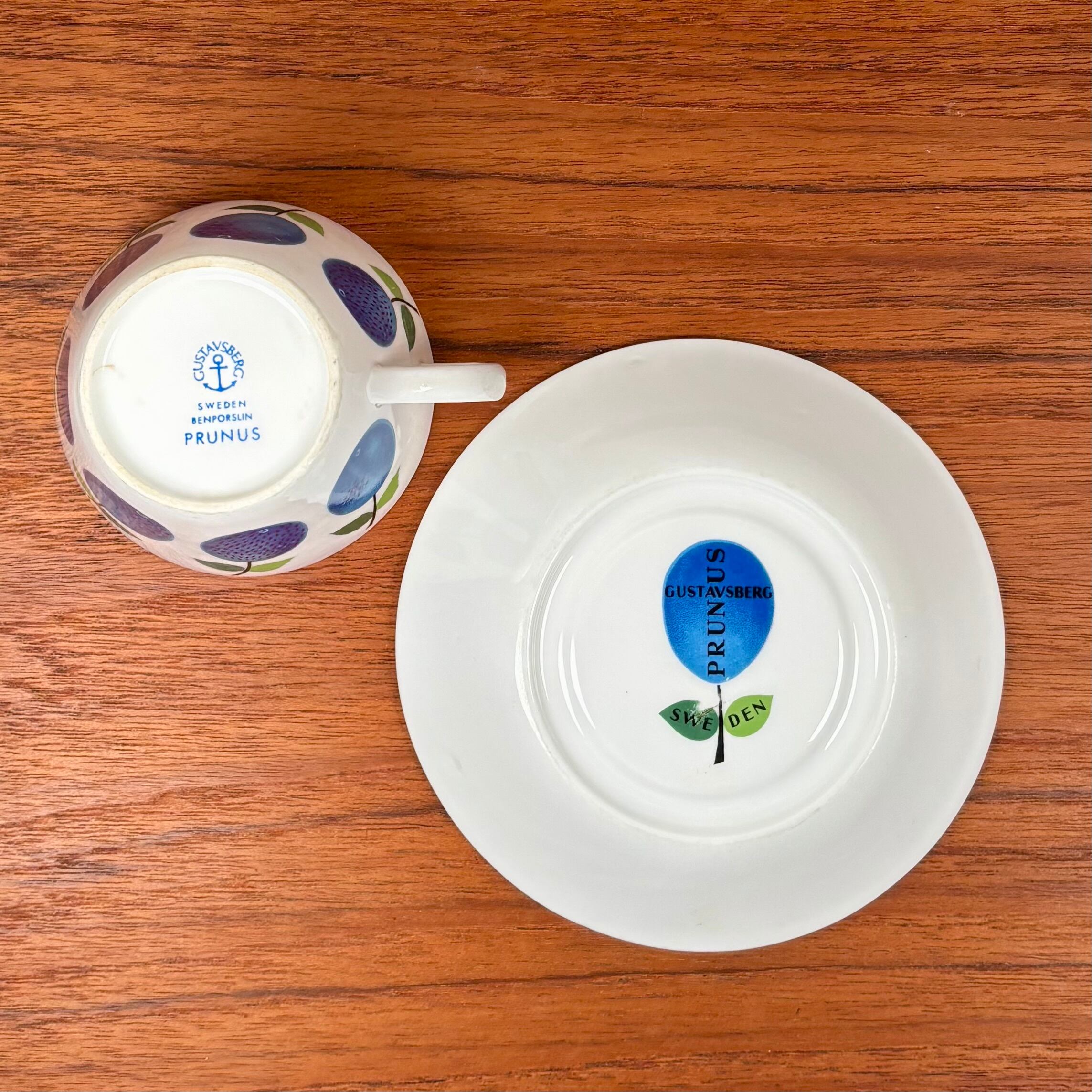 1962年〜1974年にかけて、スウェーデンのグスタフスベリ社で作られた、Prunus/プルーヌスシリーズのコーヒーカップ&ソーサーです。
