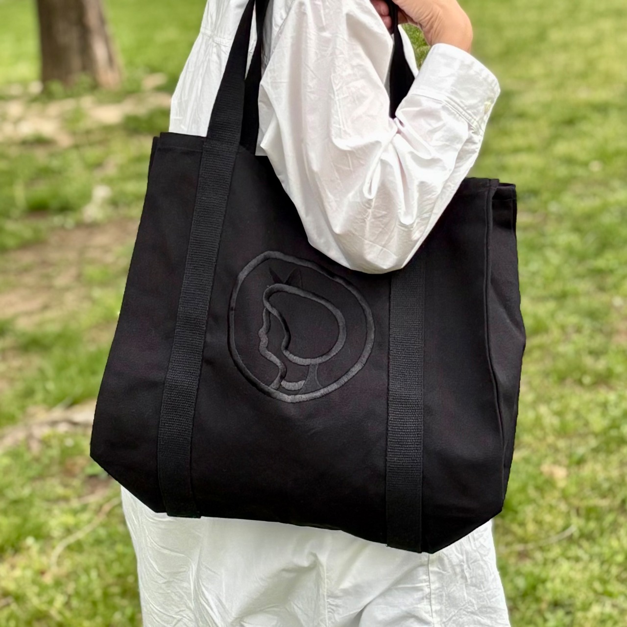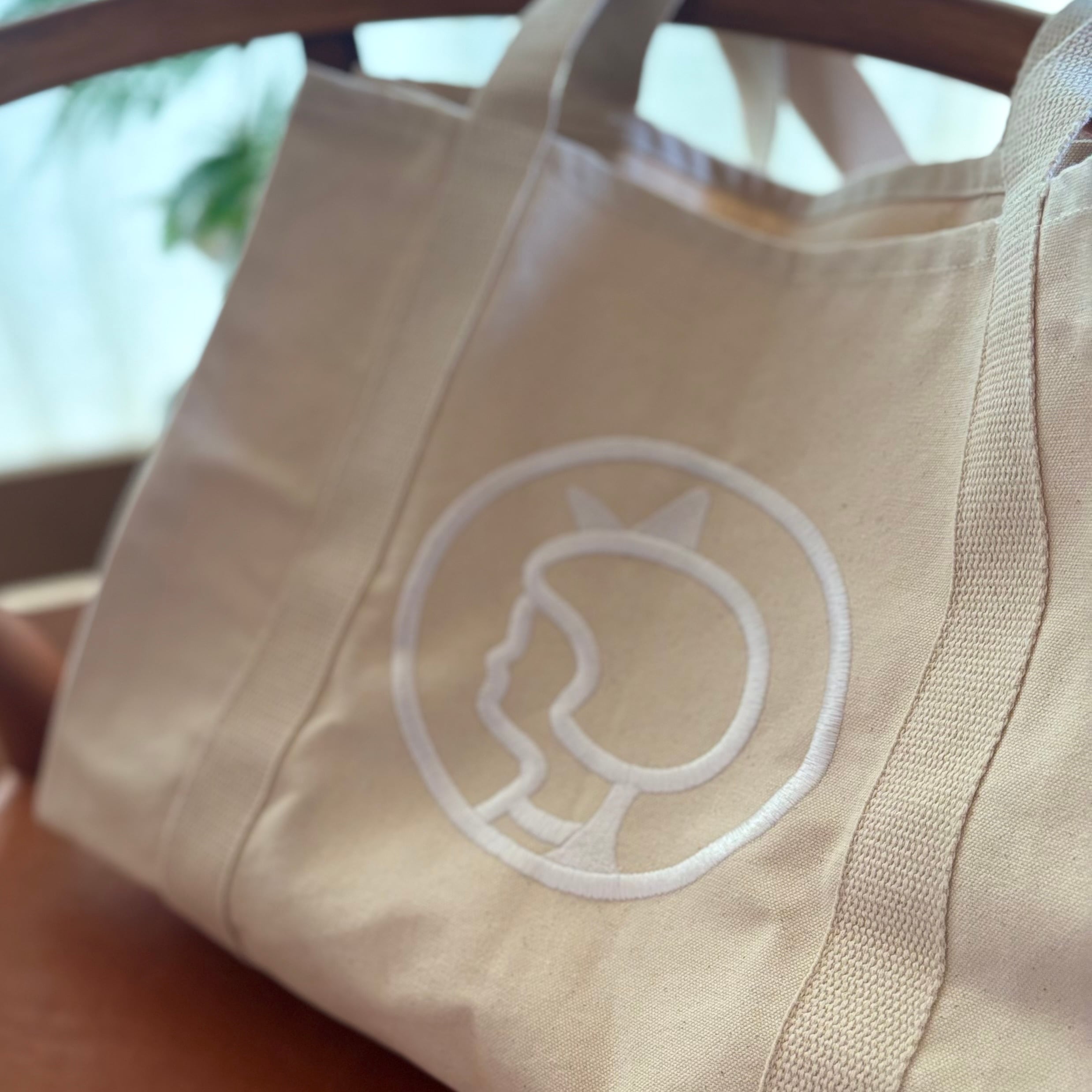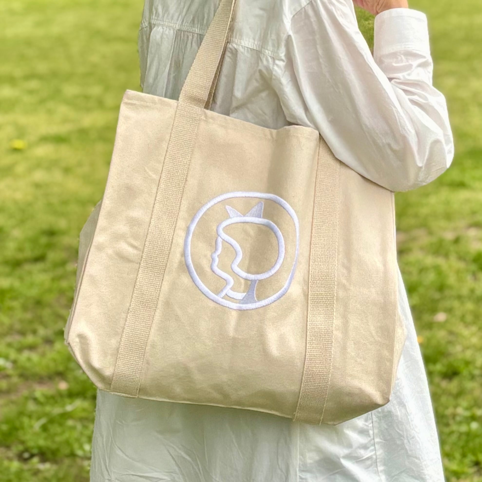 デンマークの老舗スーパーマーケット、※Irma/イヤマのアイコン的存在、可愛らしいイヤマちゃんの横顔が大きく刺繍されたキャンバストートバッグです。