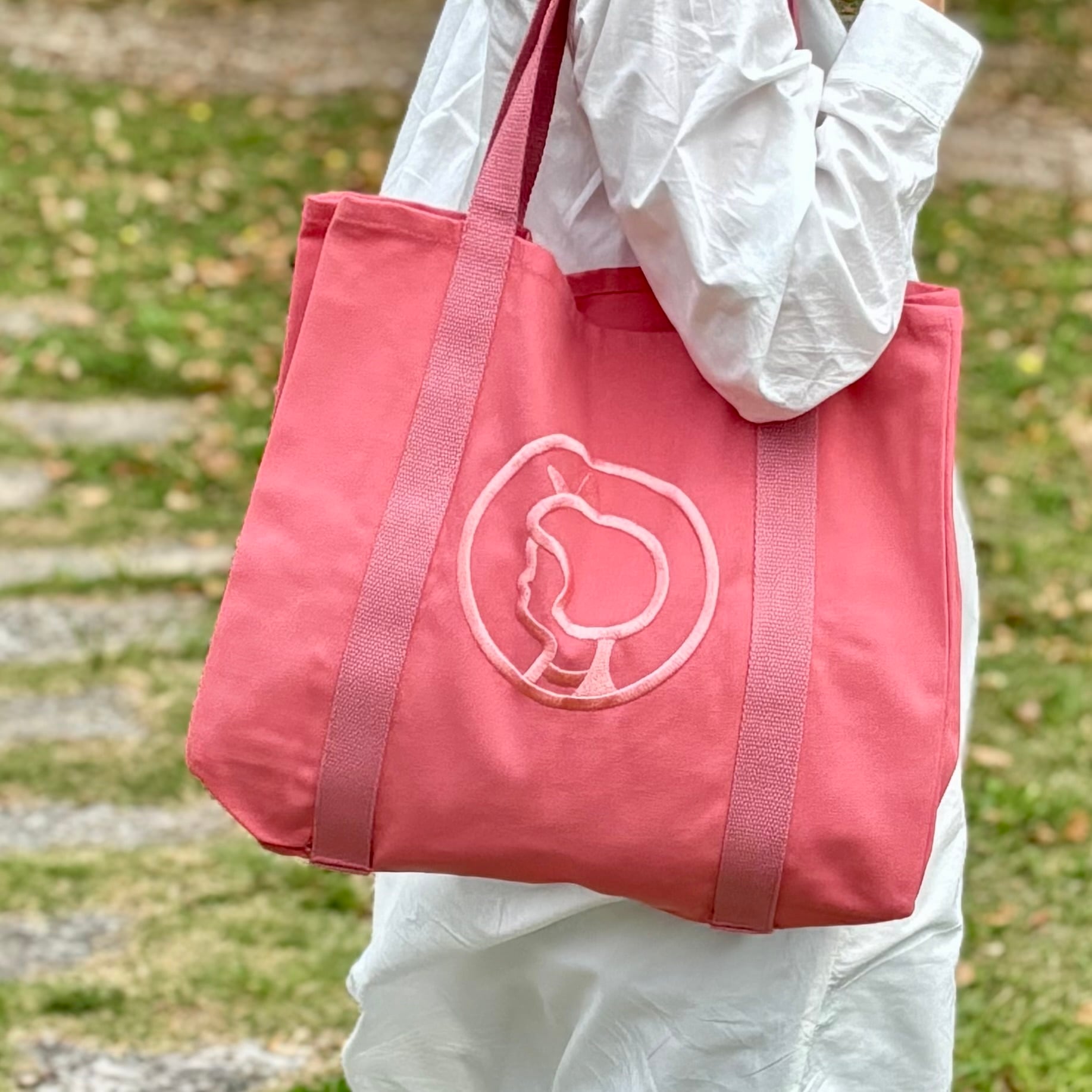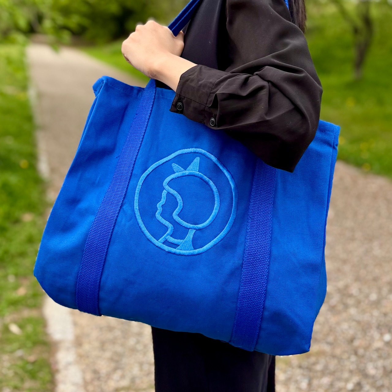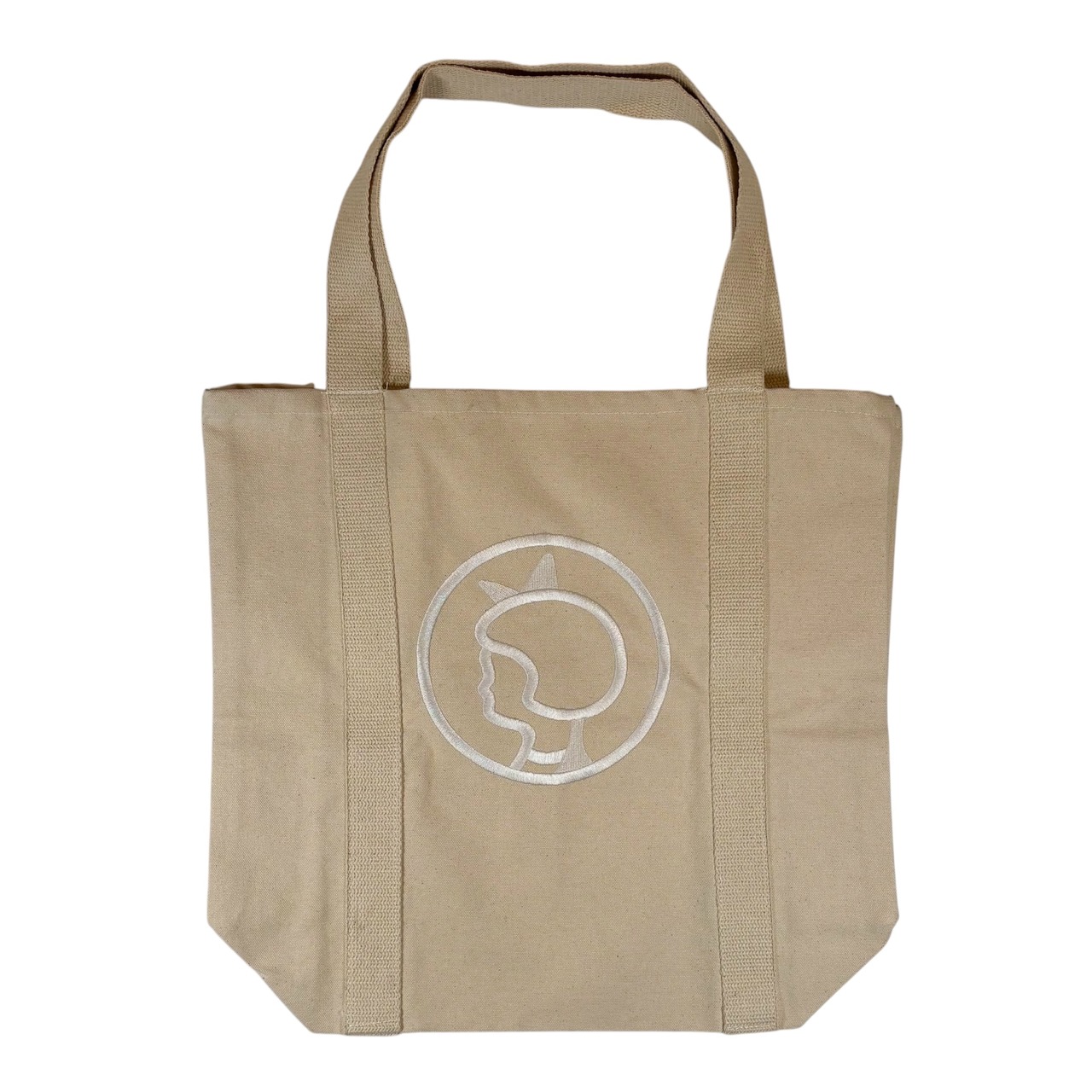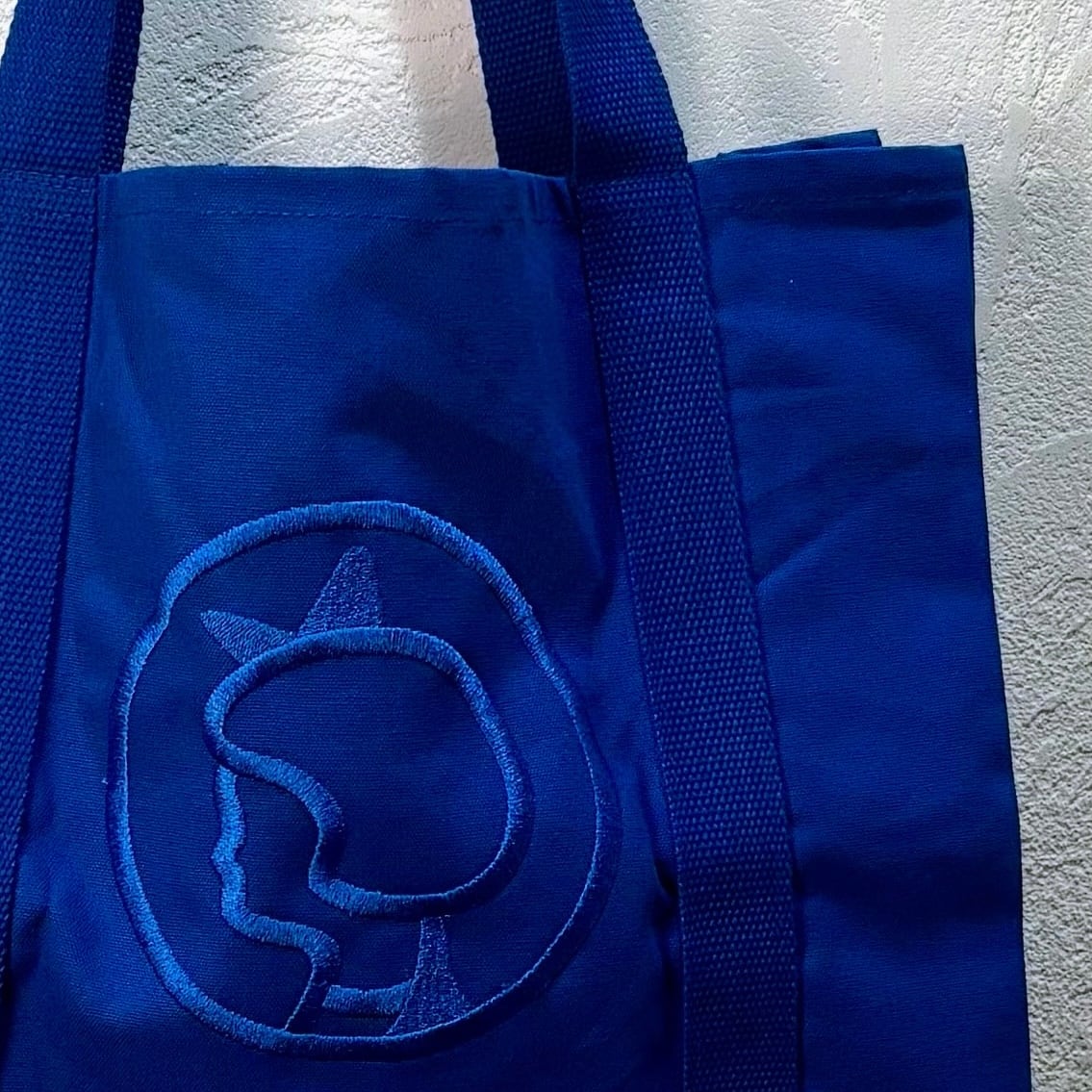 デンマークの老舗スーパーマーケット、※Irma/イヤマのアイコン的存在、可愛らしいイヤマちゃんの横顔が大きく刺繍されたキャンバストートバッグです。