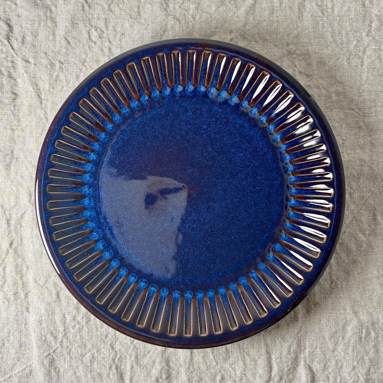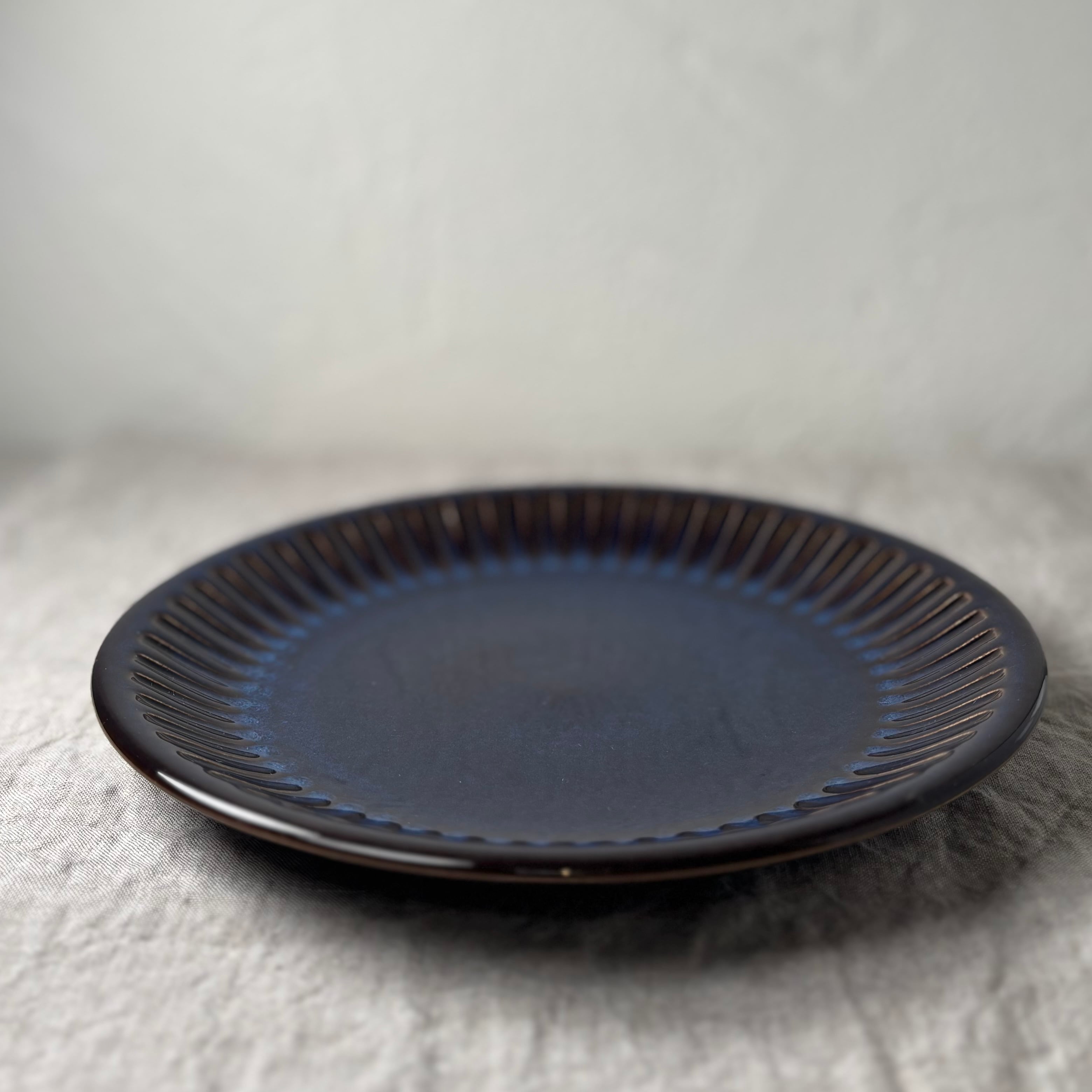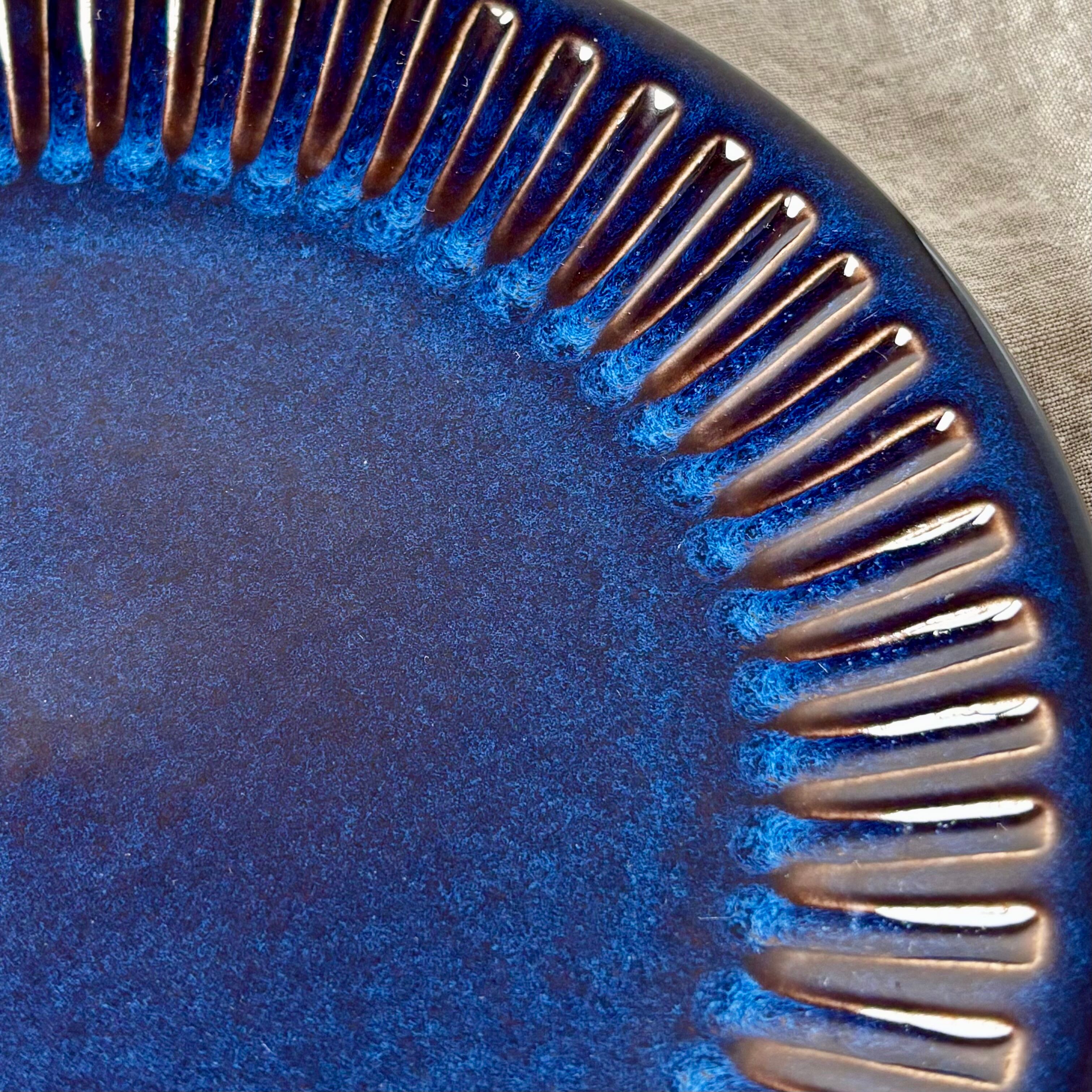 ブルーとブラウンが混ざり合った独特の色合いが大変美しく、深みのある一品です。釉薬のかかり方によって色合いや表情がそれぞれ違い、どれ一つ同じものはないといったところも、このシリーズの魅力です。