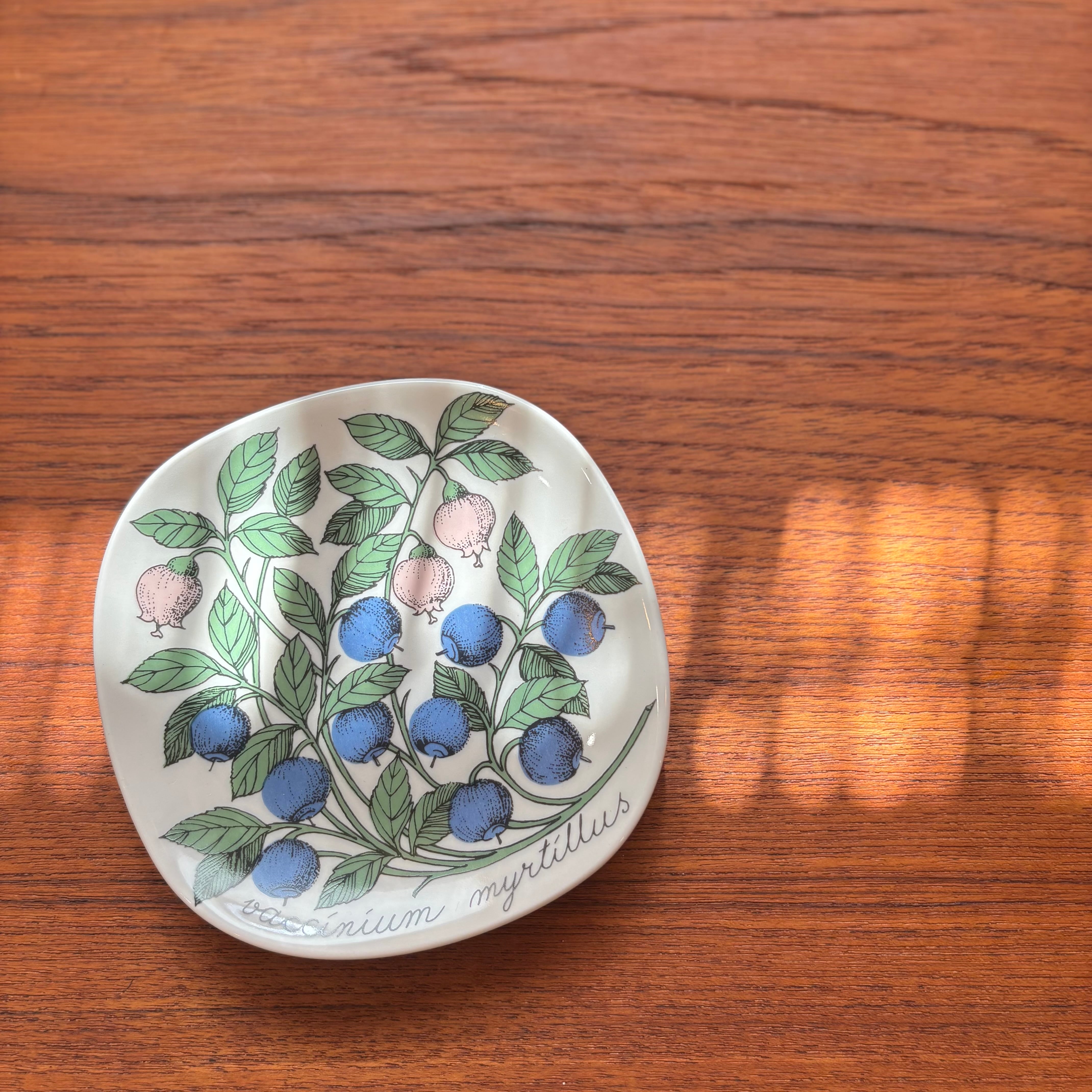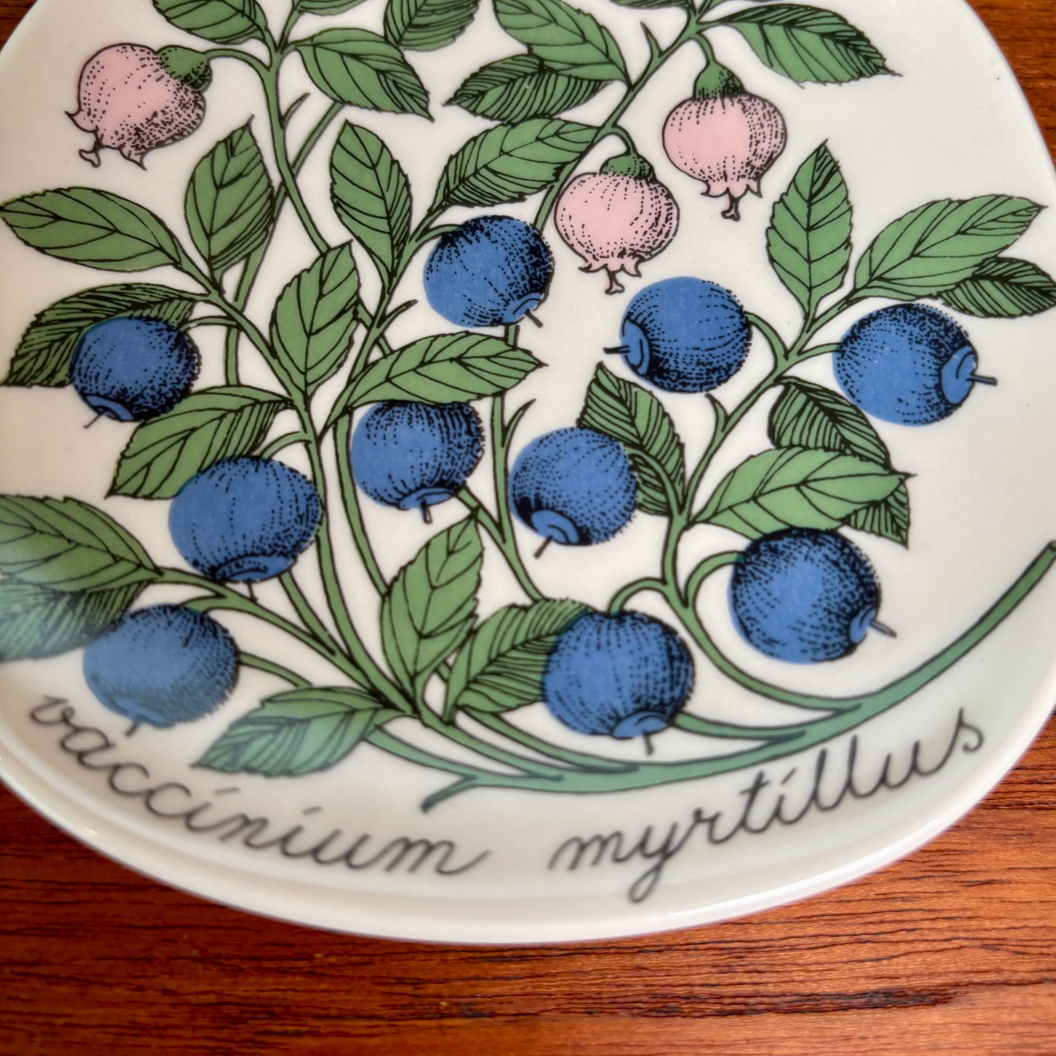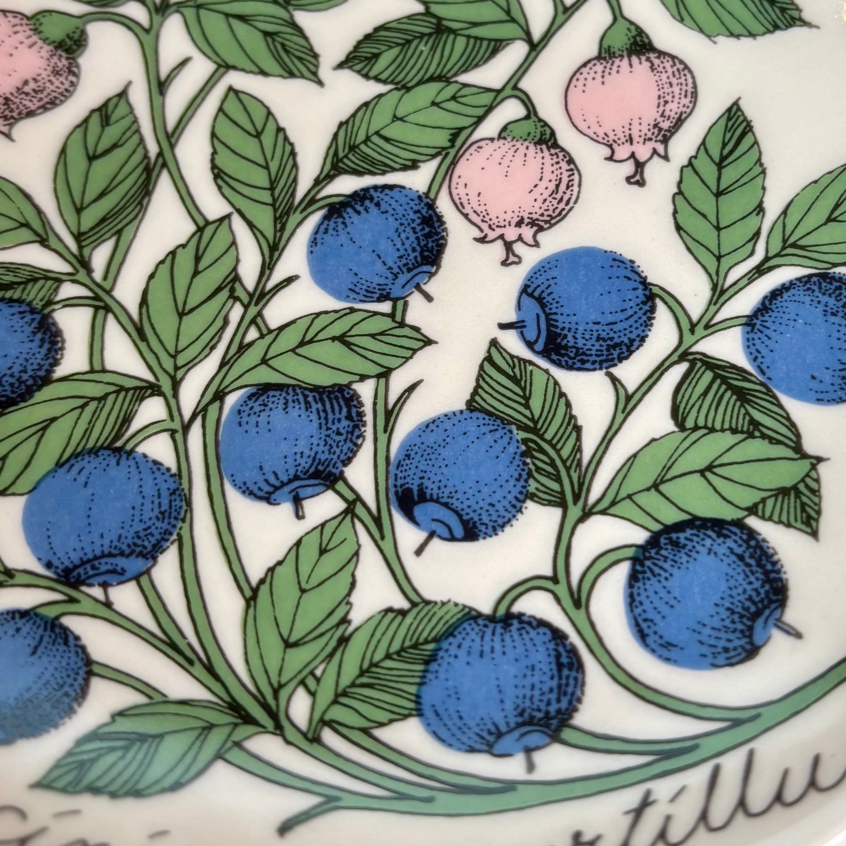 フィンランドのARABIA(アラビア)社で、1978年〜1989年にかけて作られたBotanica(ボタニカ)シリーズの一つで、「ビルベリー」が描かれたプレートです。