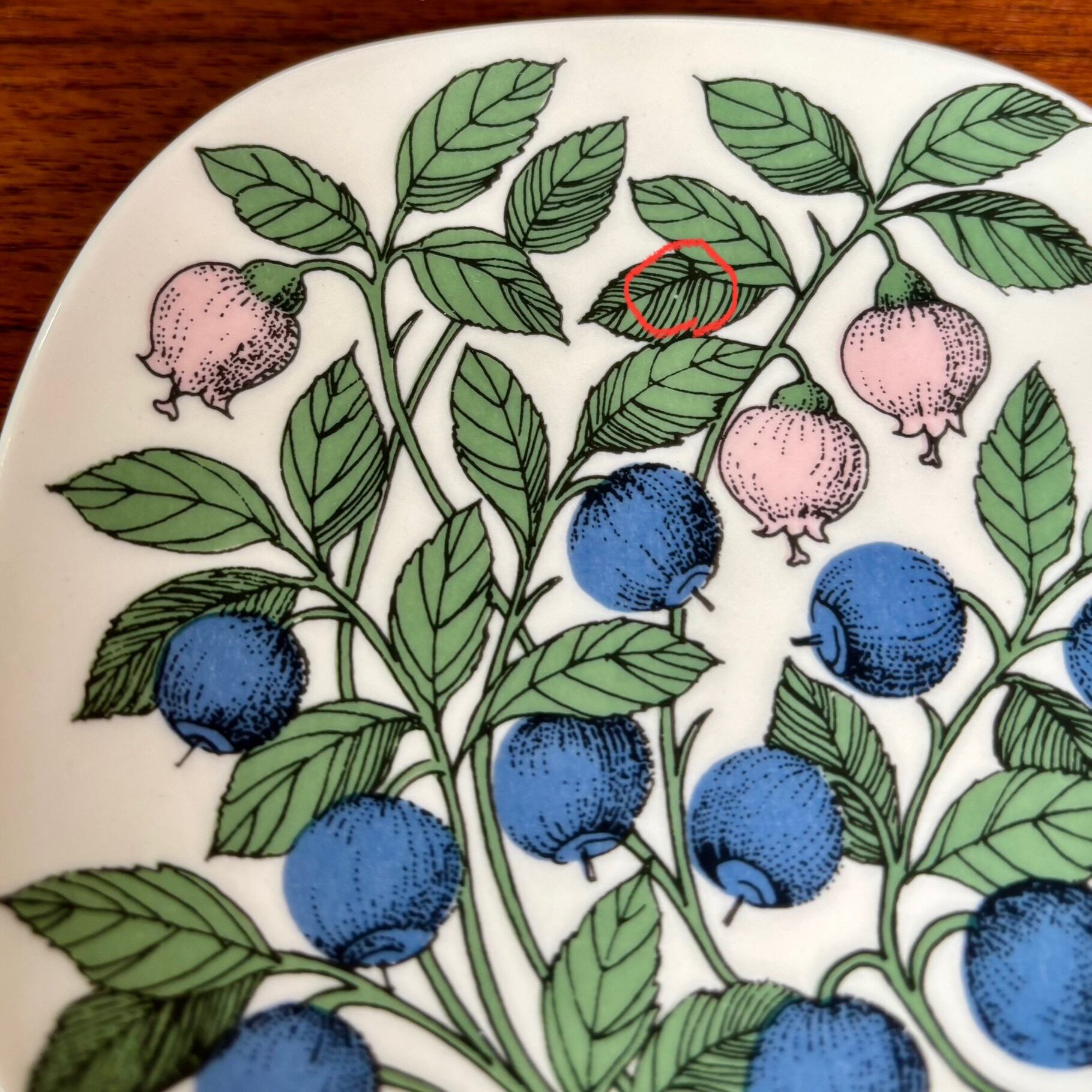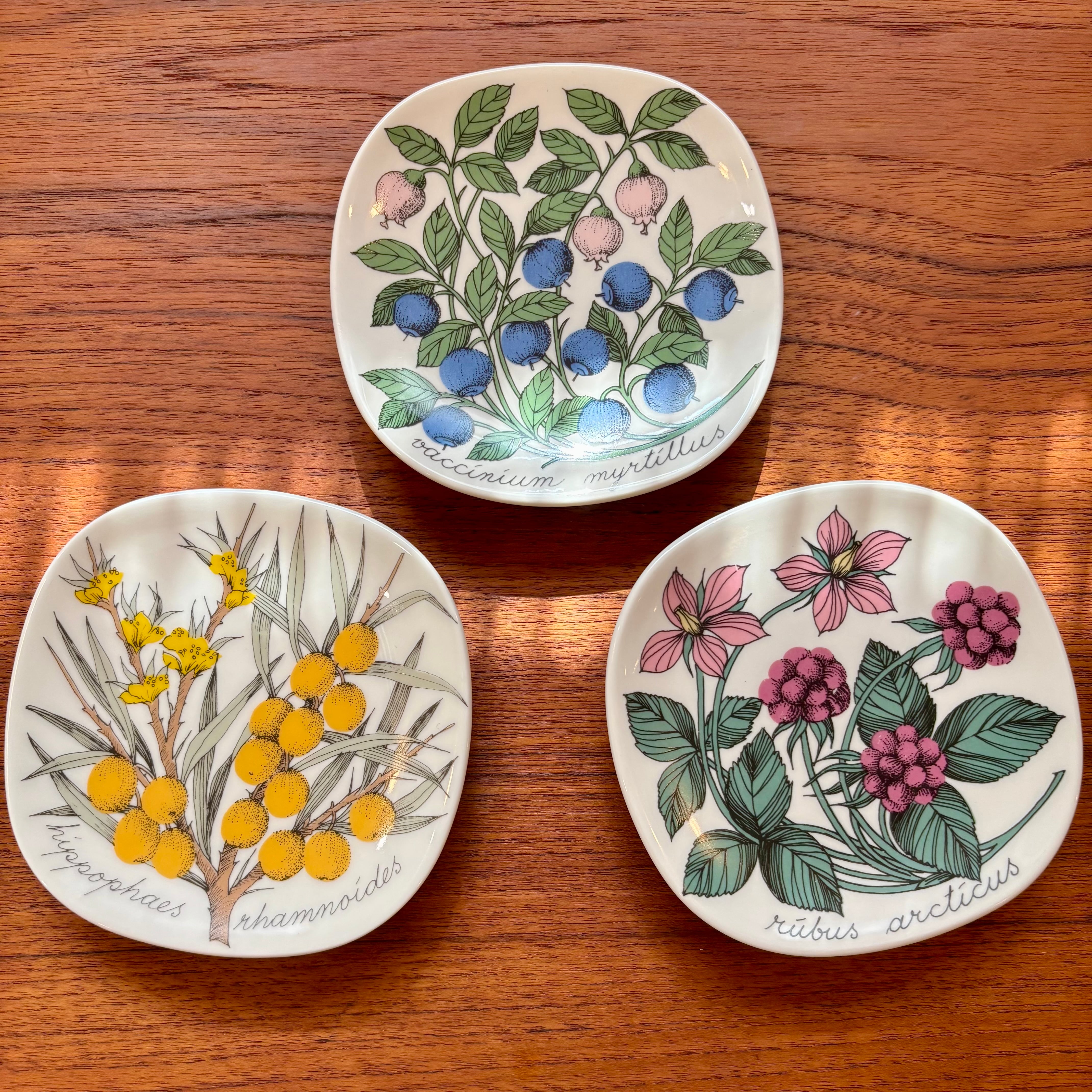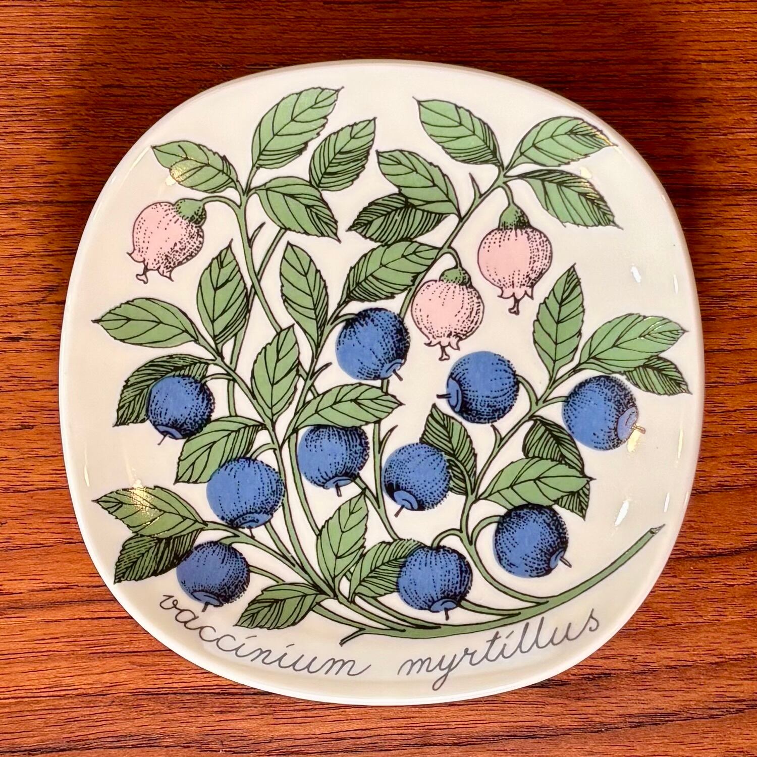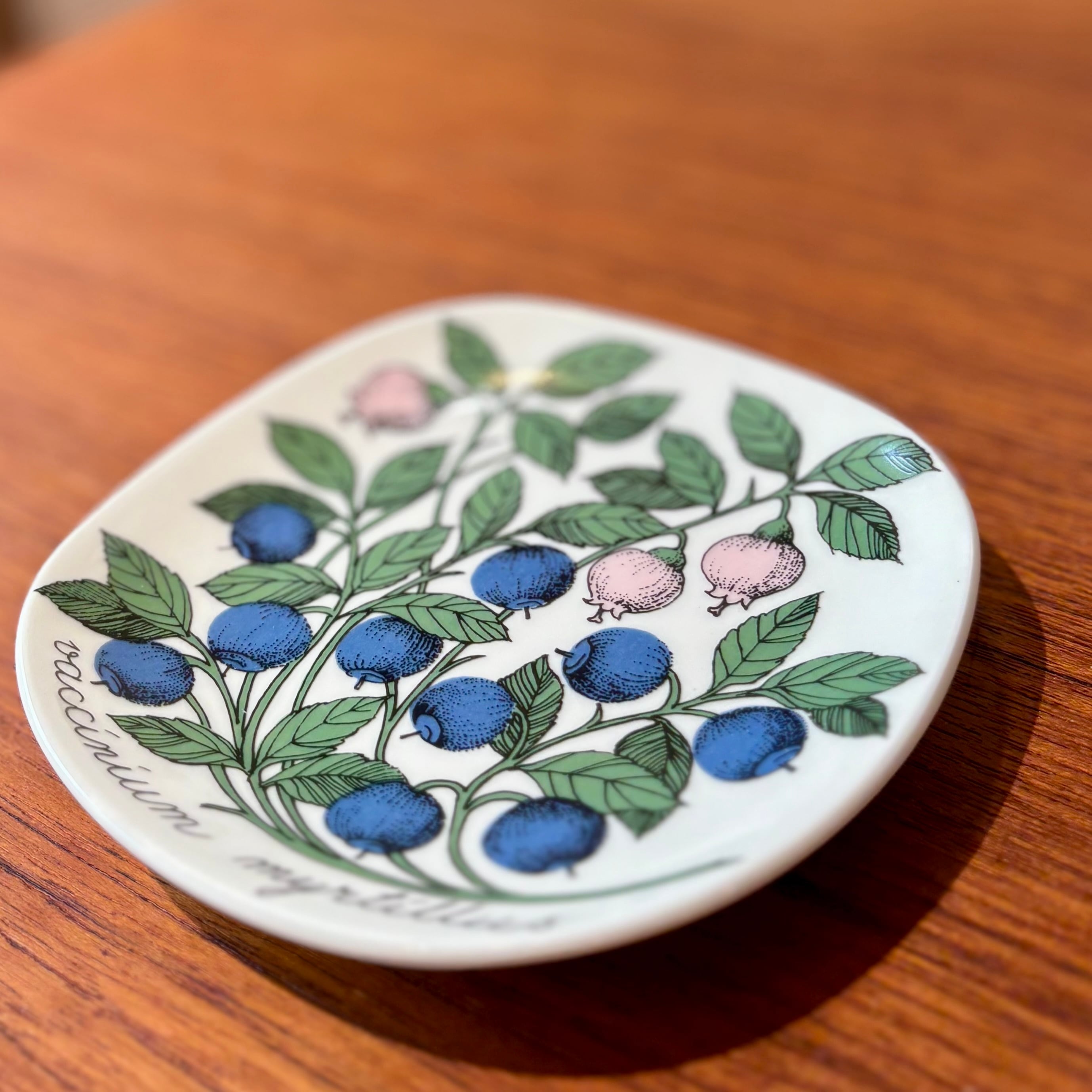 フィンランドのARABIA(アラビア)社で、1978年〜1989年にかけて作られたBotanica(ボタニカ)シリーズの一つで、「ビルベリー」が描かれたプレートです。