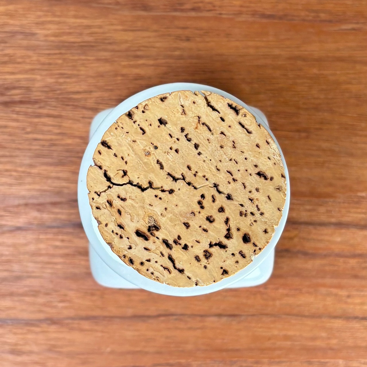 コルクの蓋は多少の経年劣化は見られますが、欠けはなく、ポットにしっかりとフィットします。