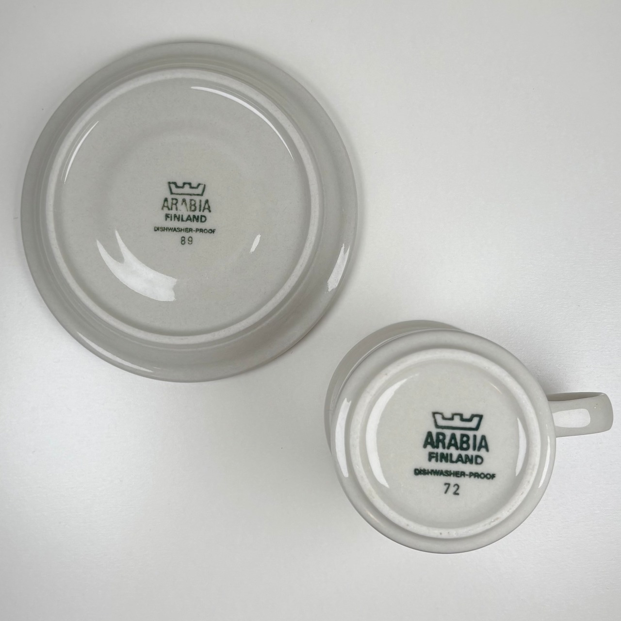 フィンランドのアラビア社で1970年代後半〜1980年代初頭にかけて作られた「Salla(サッラ)」シリーズのコーヒーカップ&ソーサー。