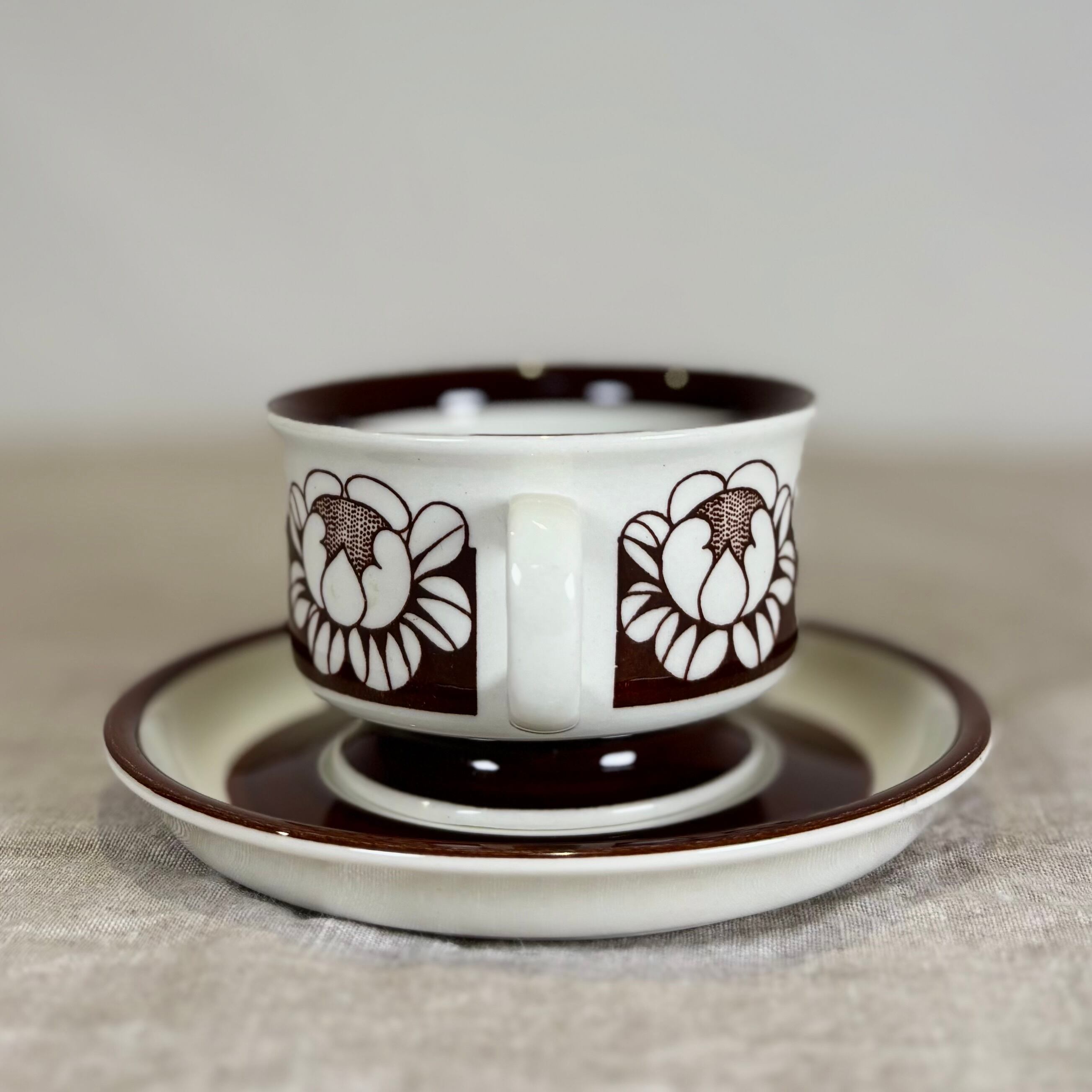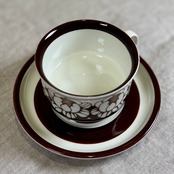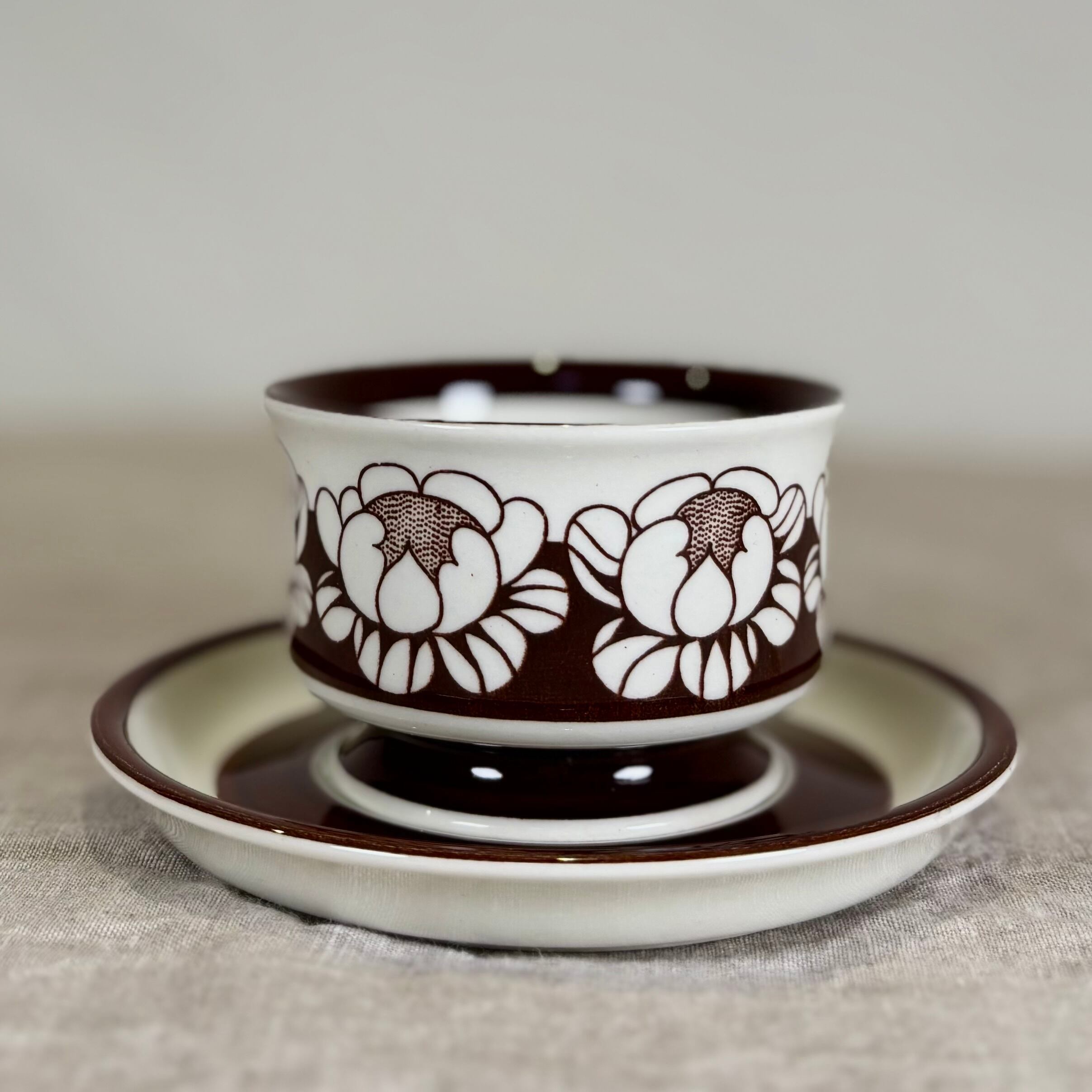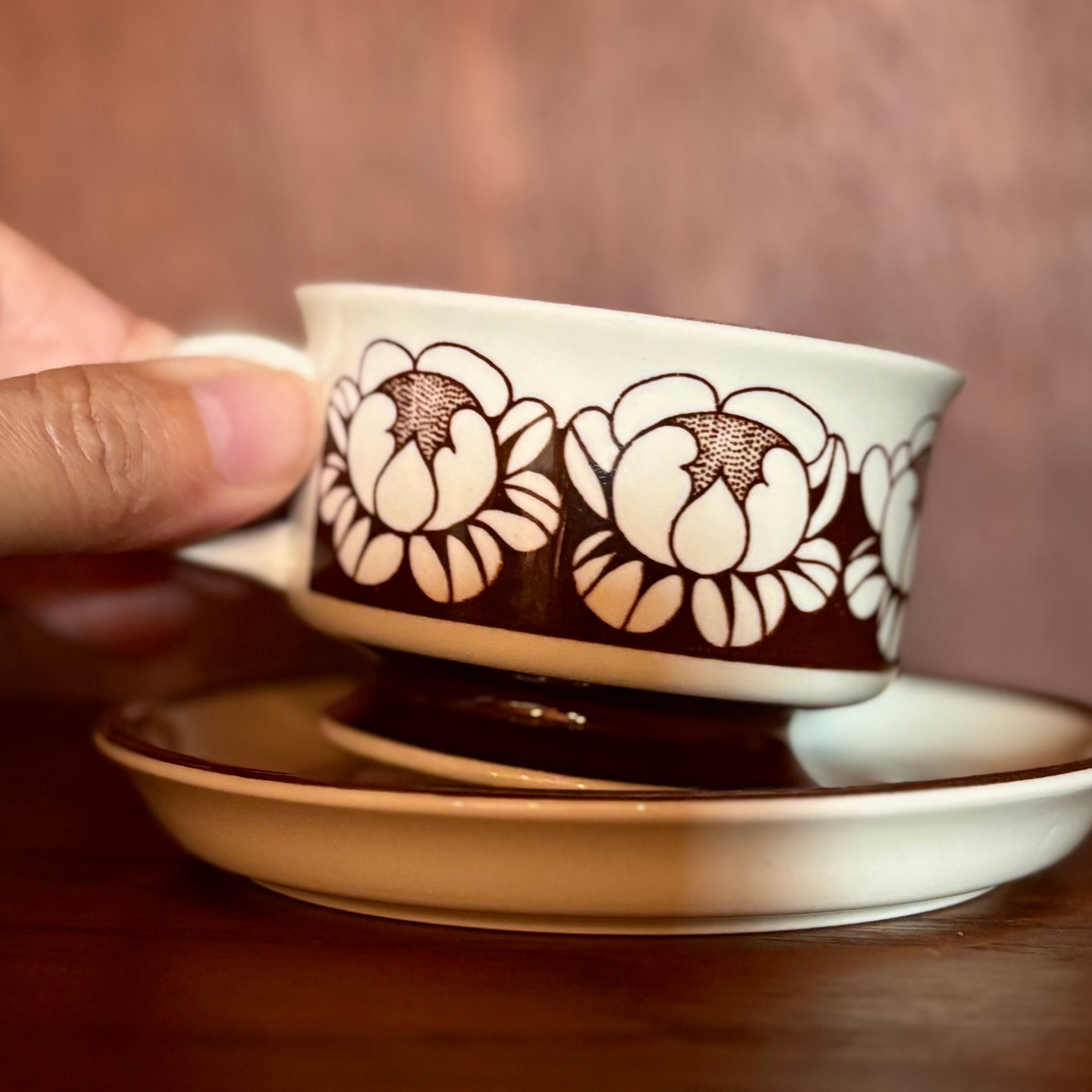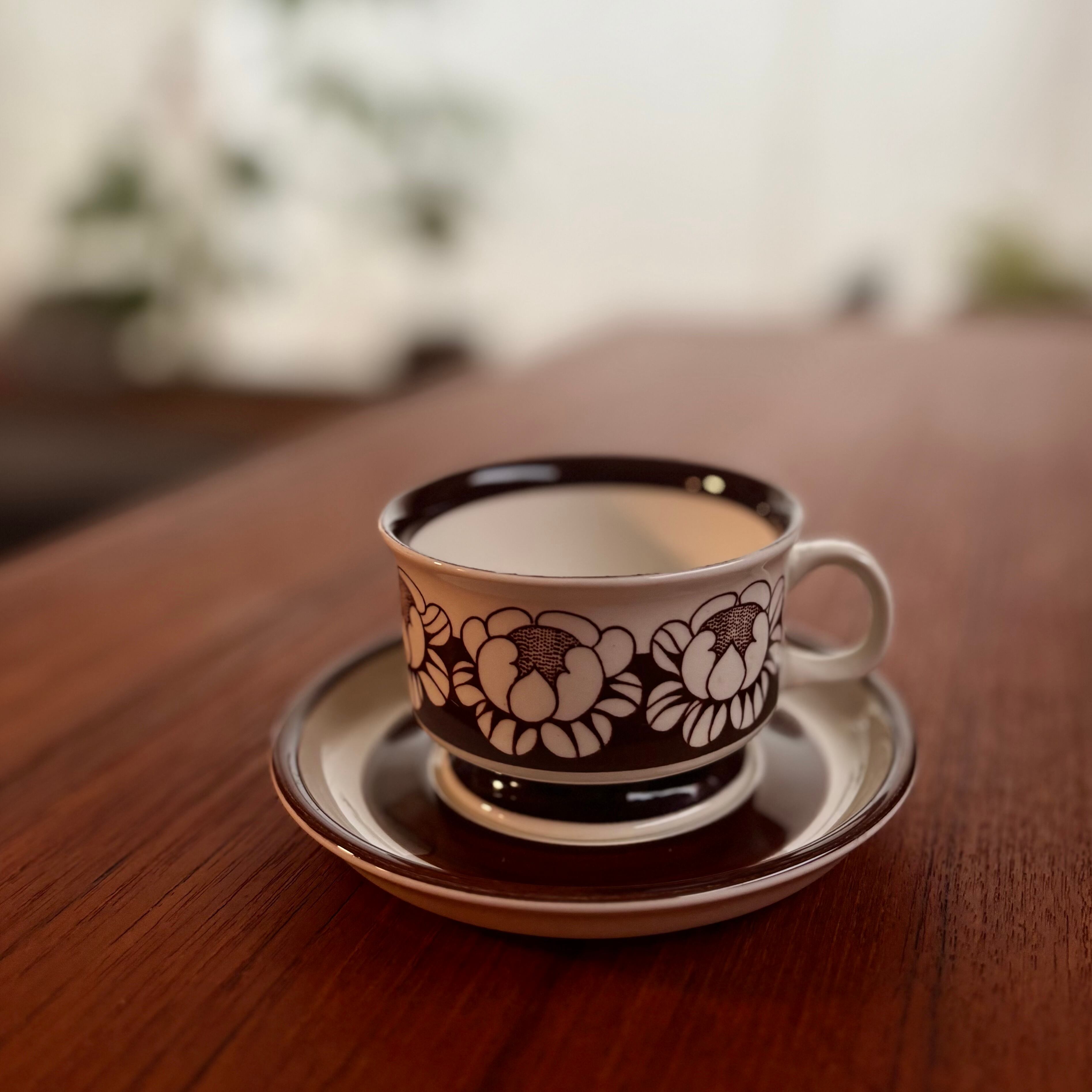 チョコレートブラウンで描かれた、ハスの花を思わせる大ぶりな花模様が印象的な、Katrilli(カトリーリ)のデミタスカップ&ソーサー。