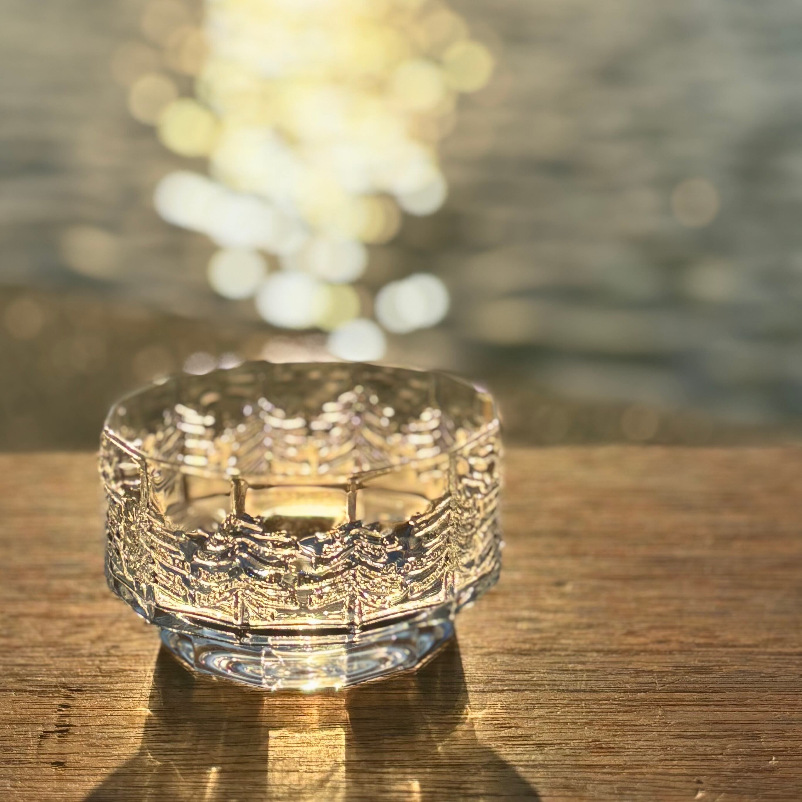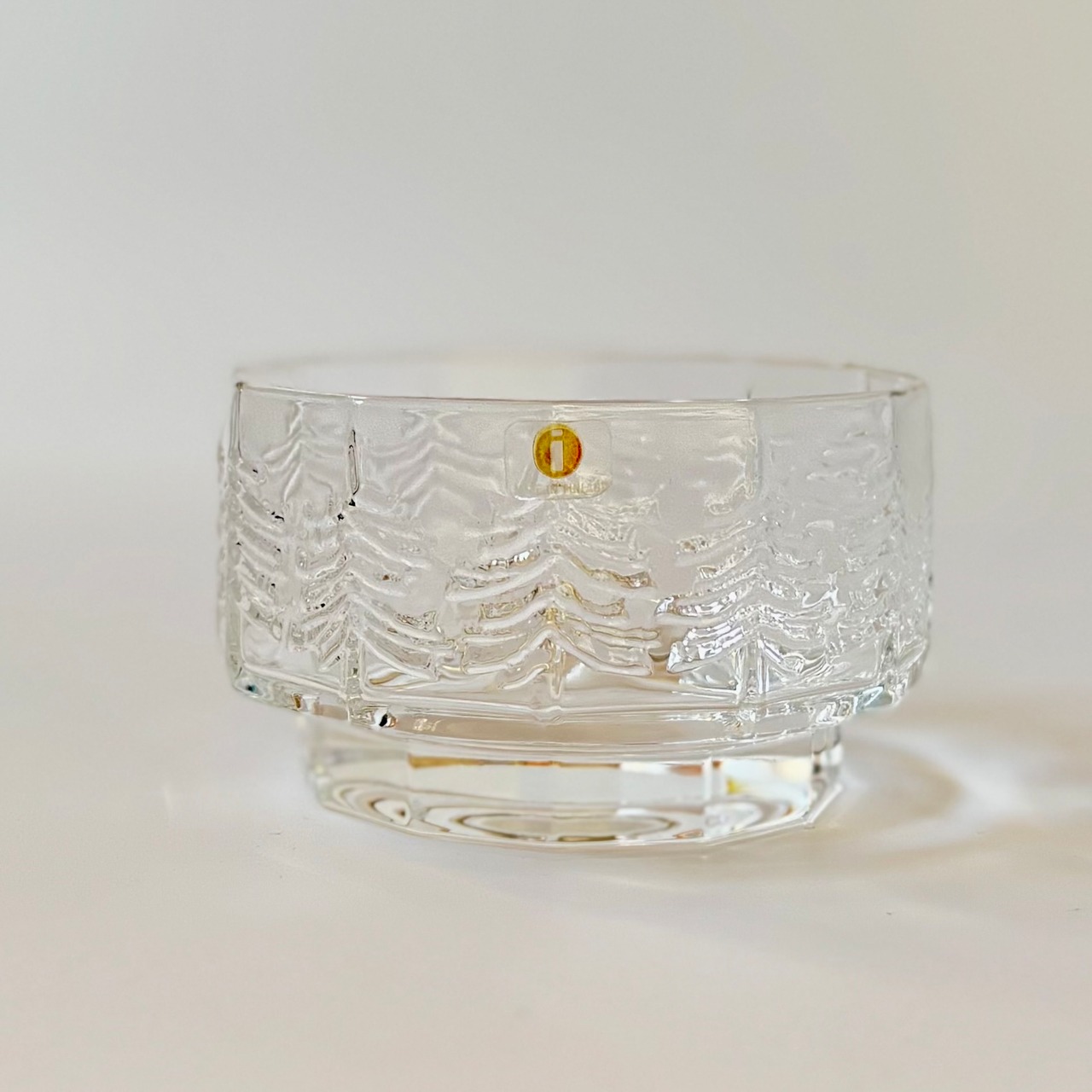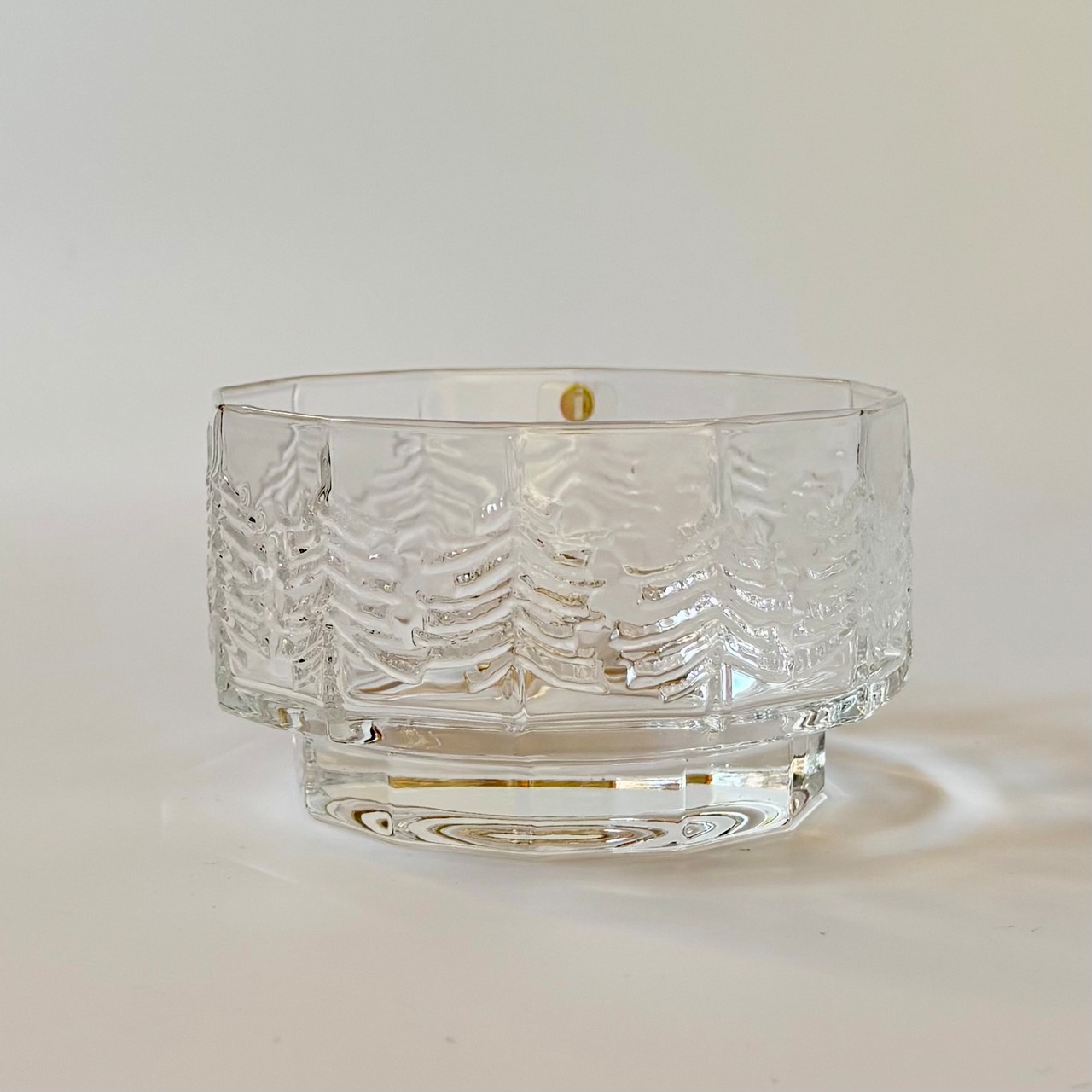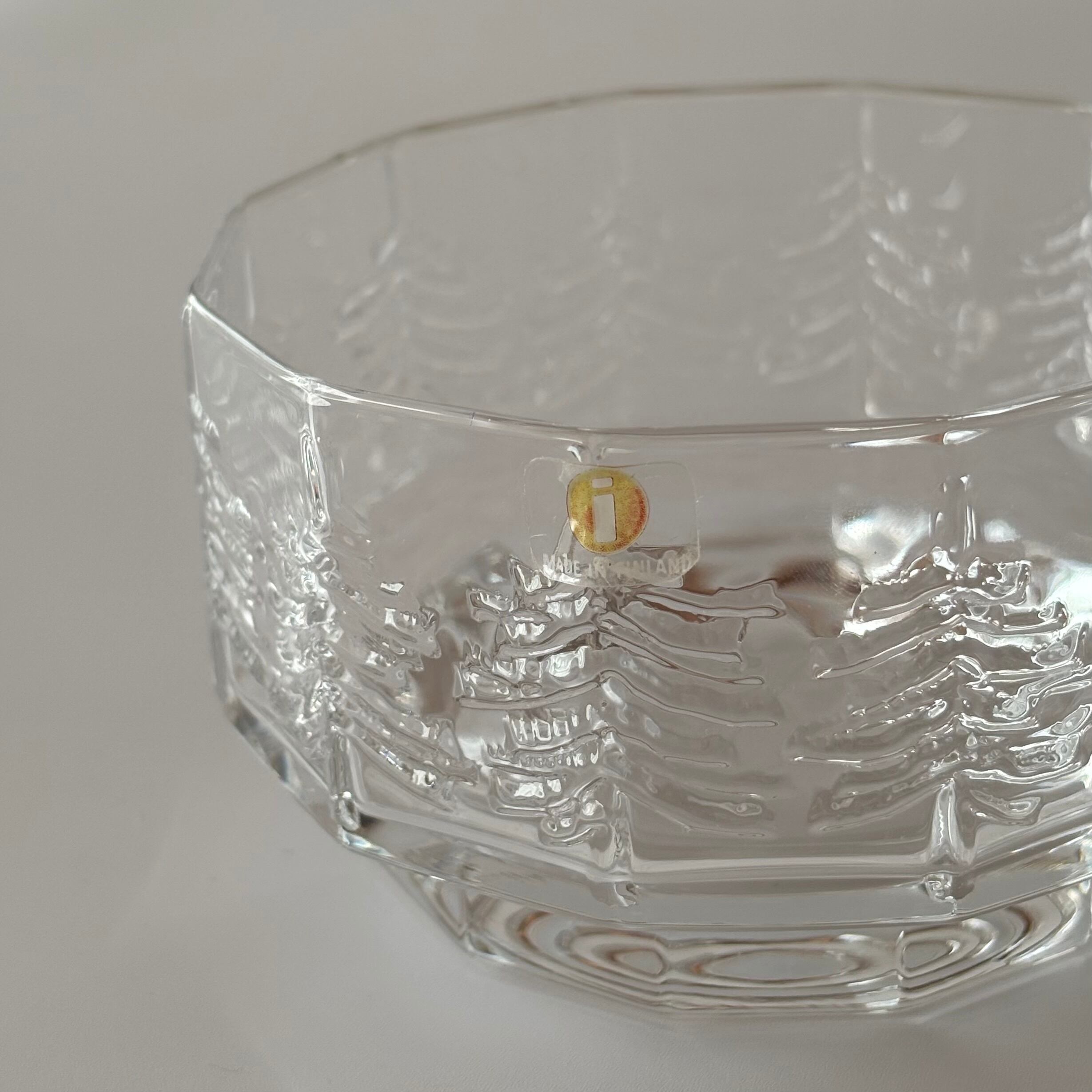 工業的な量産ガラスに、彫刻的な造形や自然モチーフの美しさを取り入れたデザインで知られ、「Kuusi」も彼の代表作のひとつです。