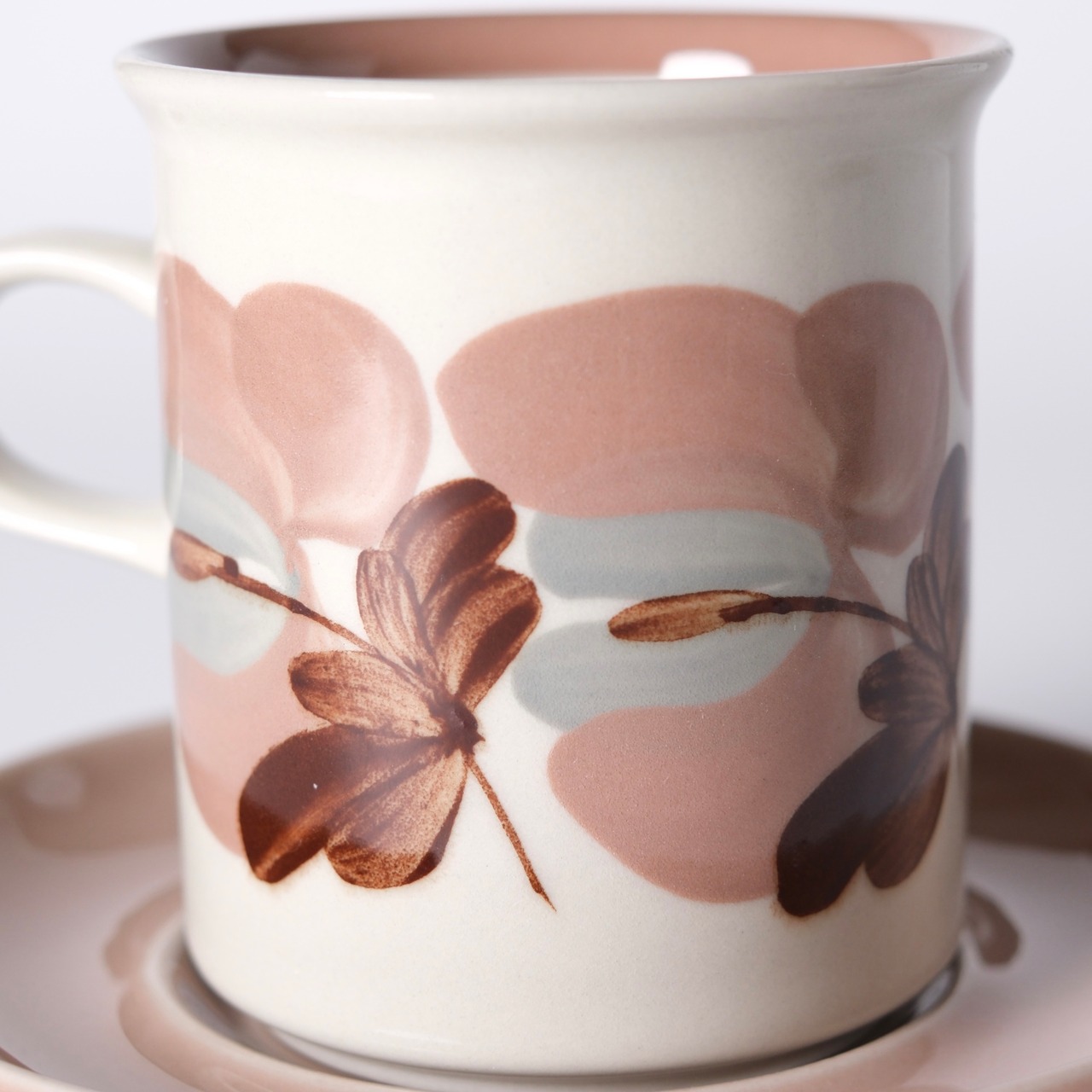 そしてブラウンで描かれた花模様は、熟練の絵付け師によって一筆ずつ丁寧に描かれています。