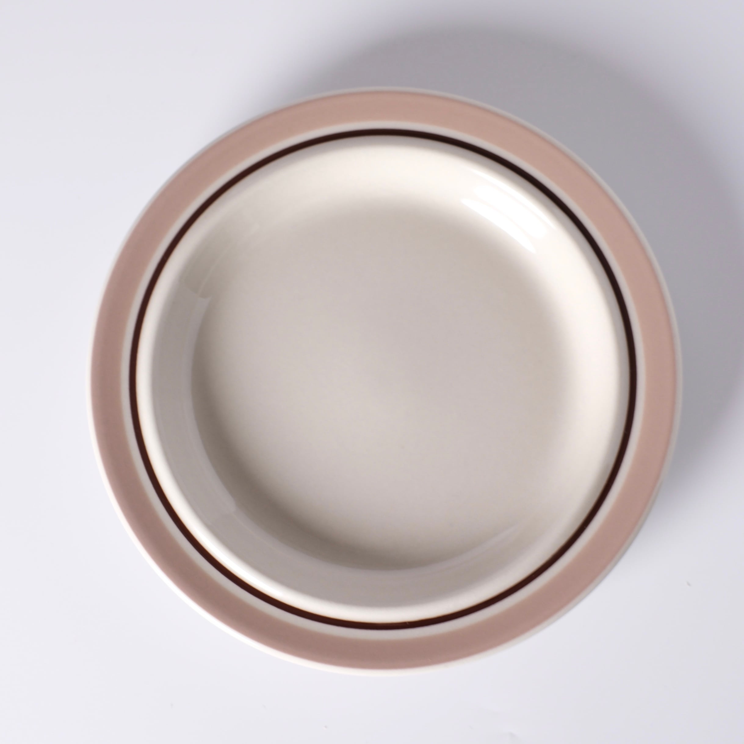 外周には温かみのあるくすみピンク、その内側には細いブラウンのライン。