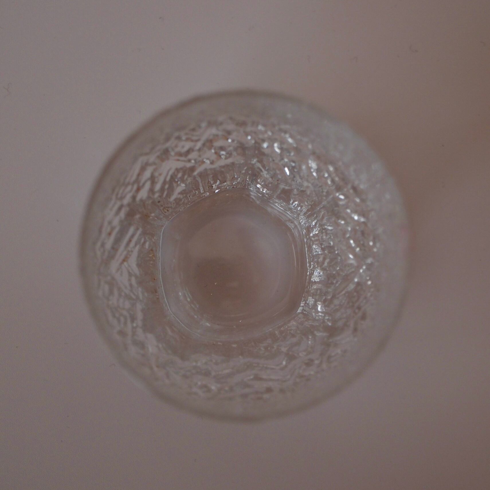 表面の凹凸は、木製の型を使った吹きガラス技法によるもの。
