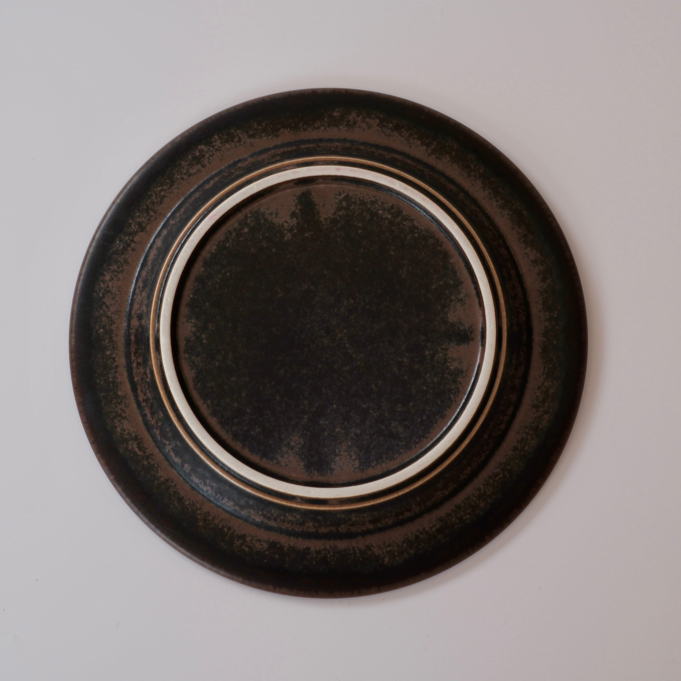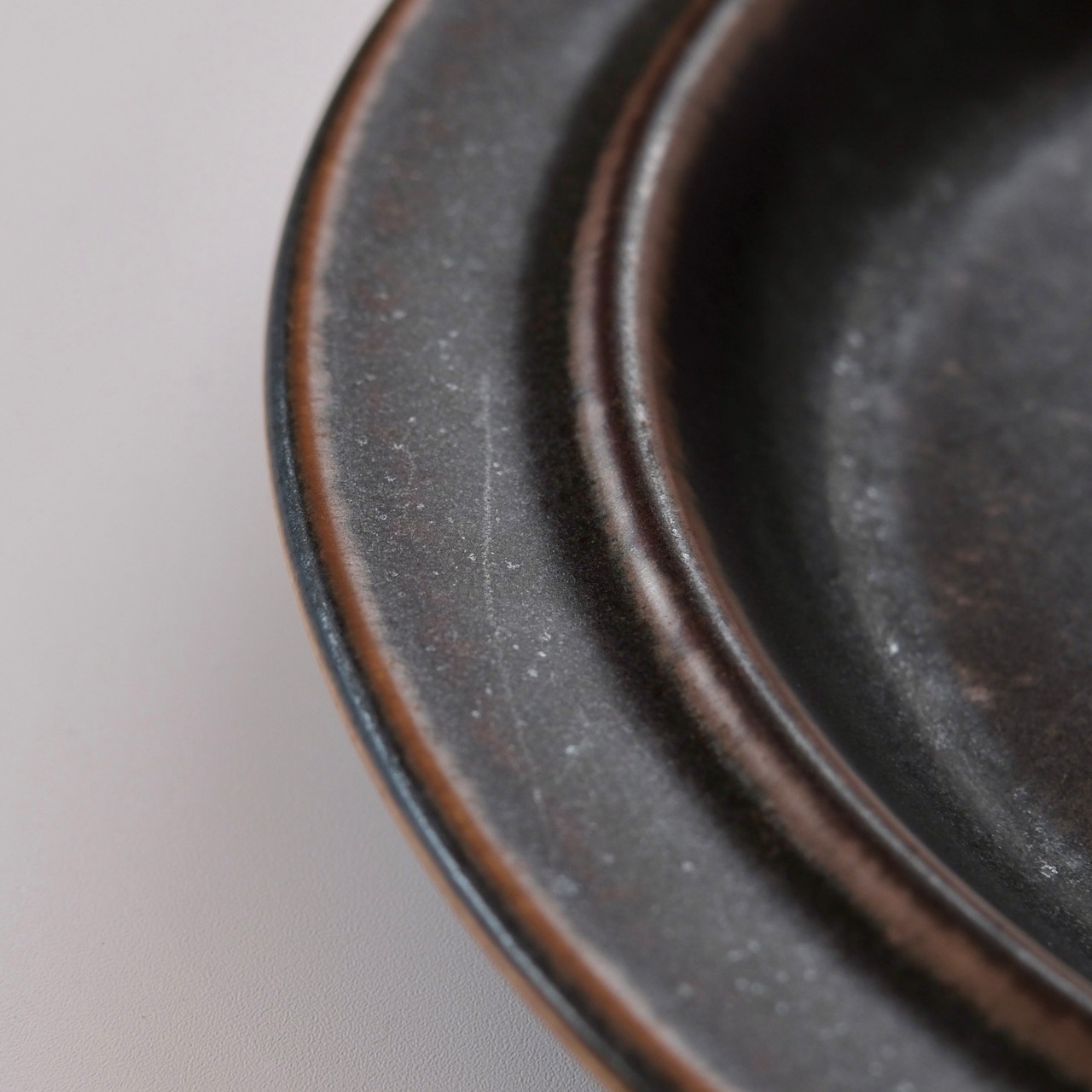 表面にごく軽いスレがあり、縁付近には使用にともなうメタルマーク(カトラリーの金属が釉薬表面に付着してできる、使用にともなう跡)がわずかに見られます。(写真8枚目)