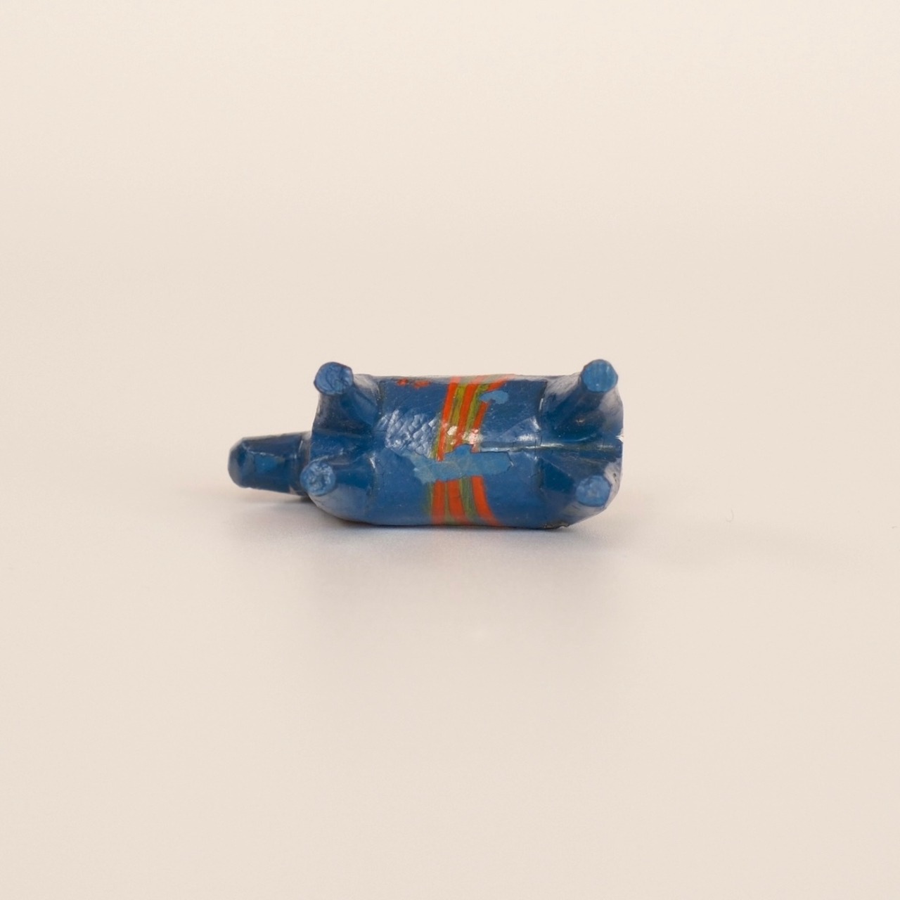 こちらは、柔らかなブルーをベースに、赤と緑、そして白で描かれたクルビッツ装飾が印象的な、とても小さな一体です。