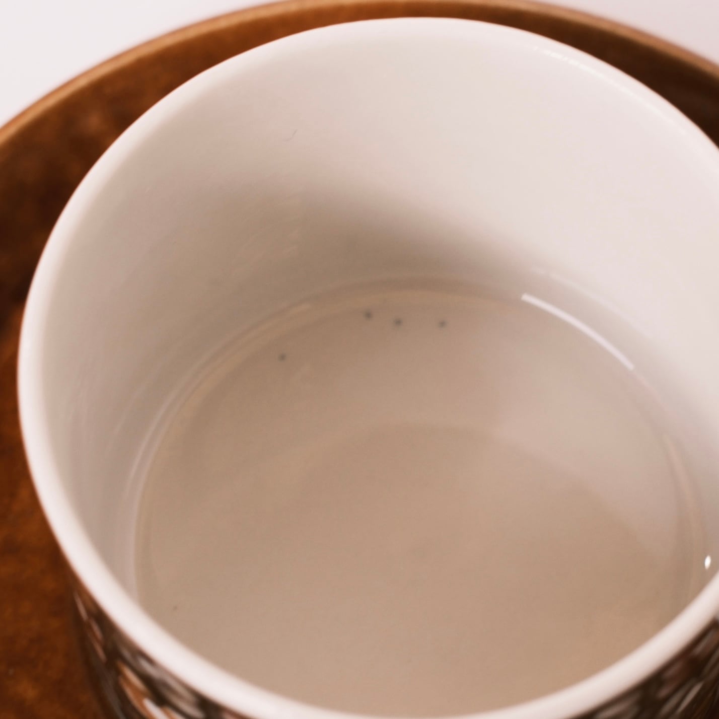 カップ底には、製造時に釉薬に含まれていた鉄分の影響による、小さな黒点が見られます。