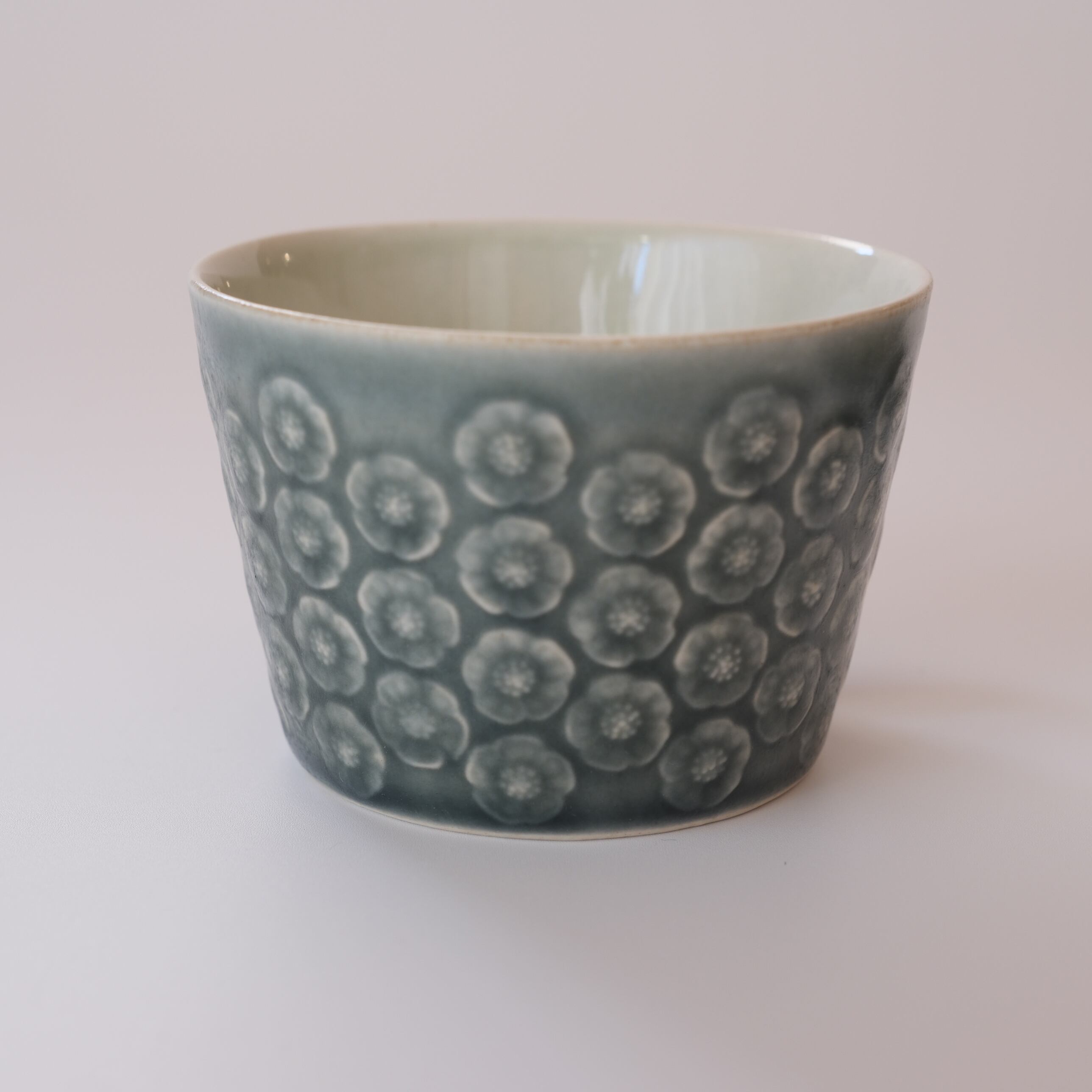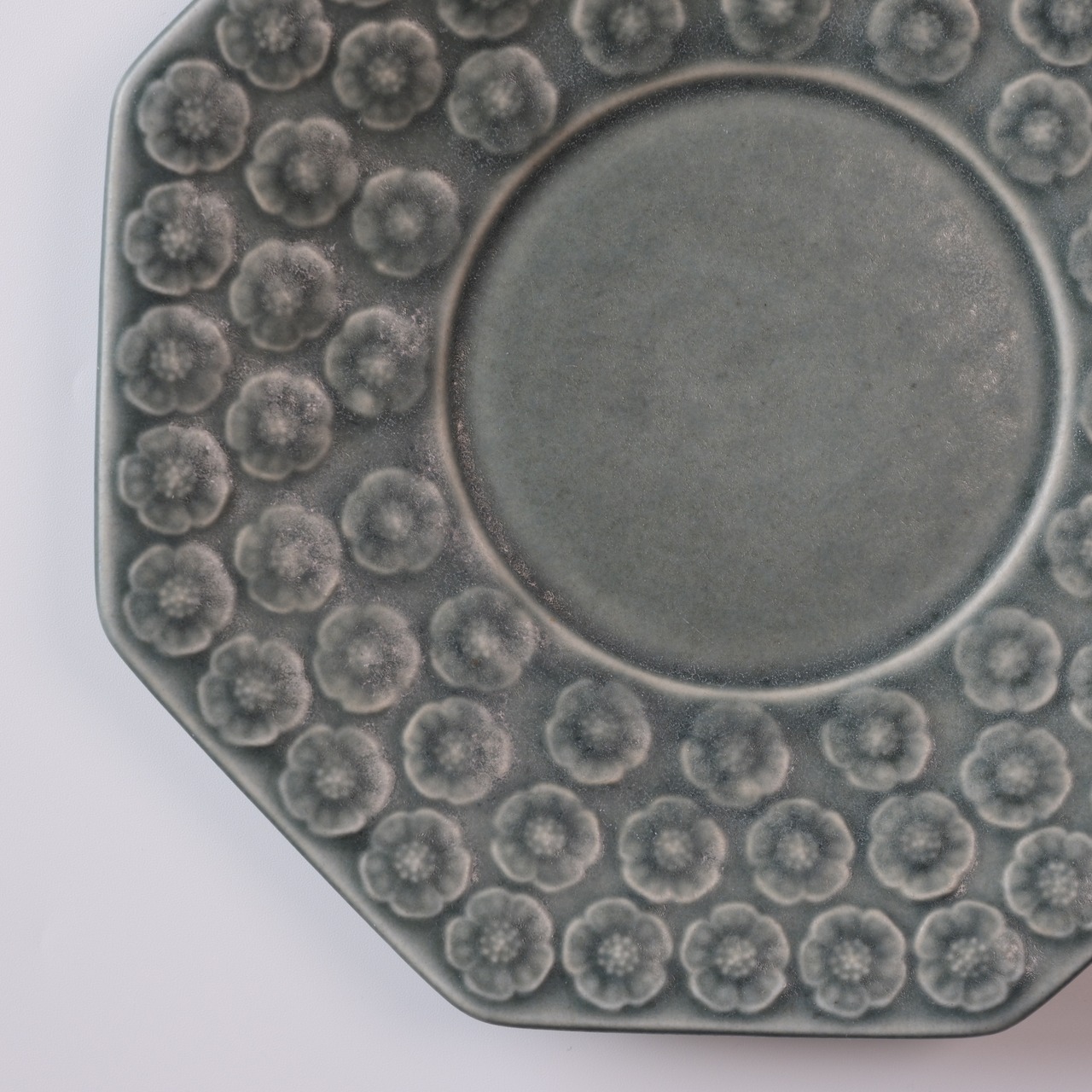 器の表面には、小さな花のレリーフが整然と並んでいます。