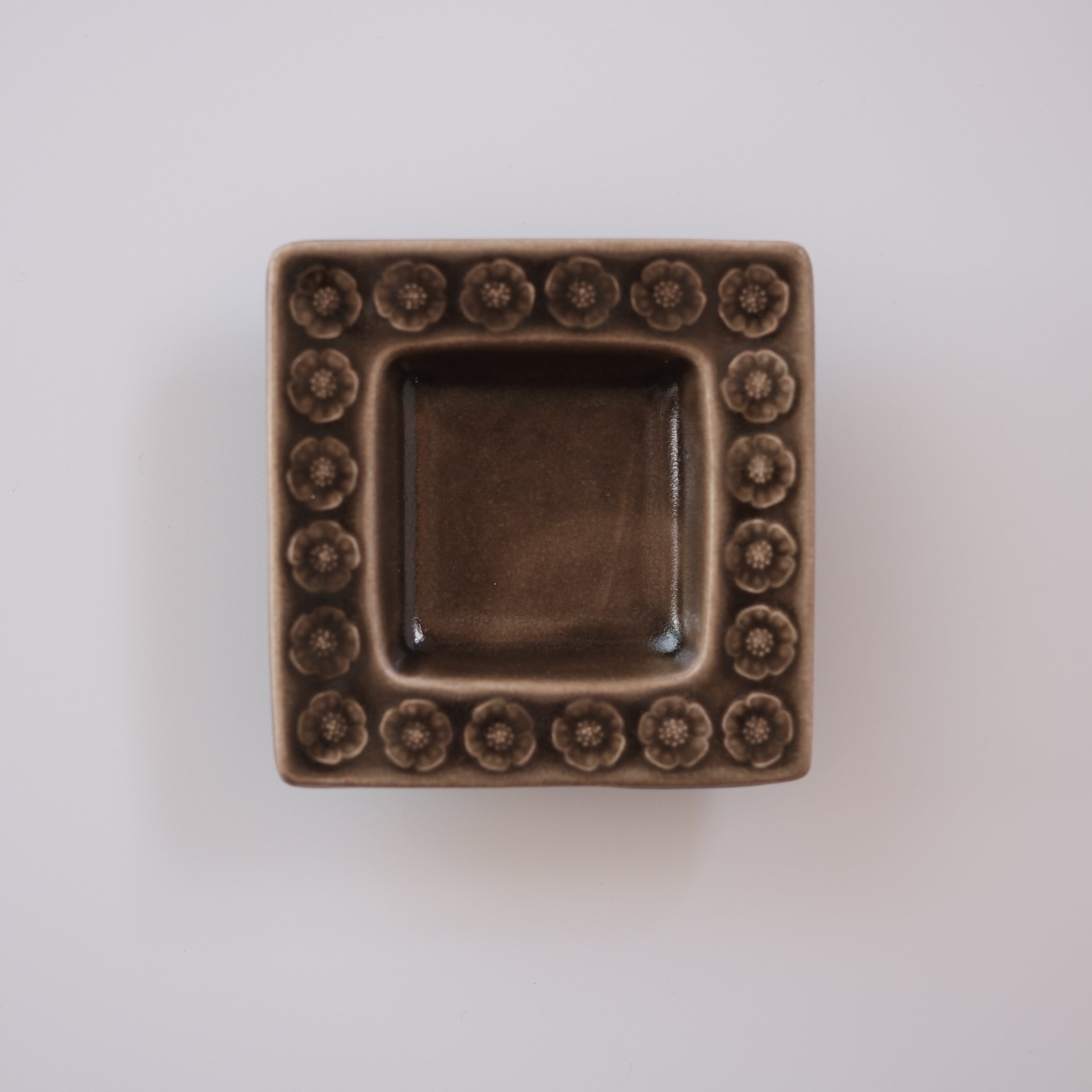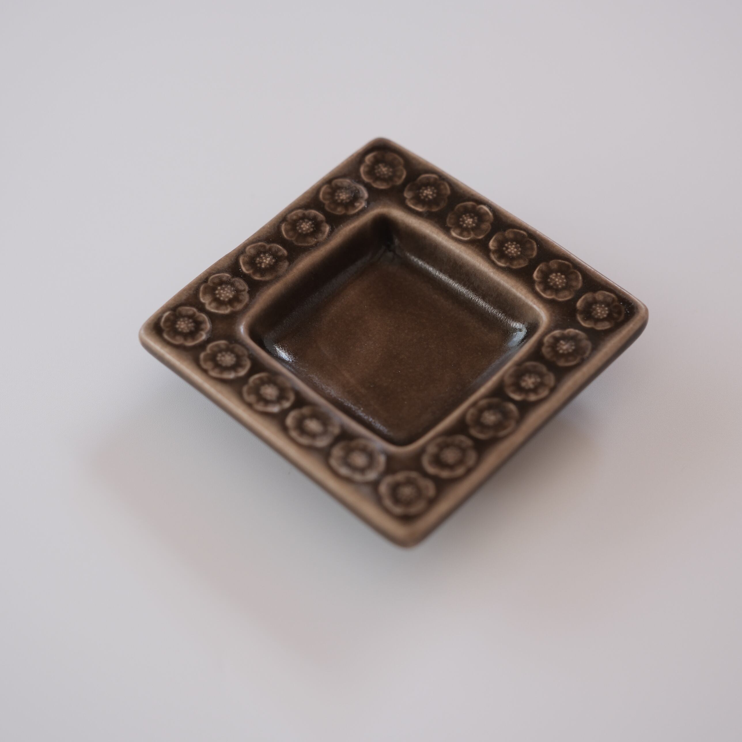 落ち着いたブラウンの釉薬は、光の当たり方によって静かに表情を変え、