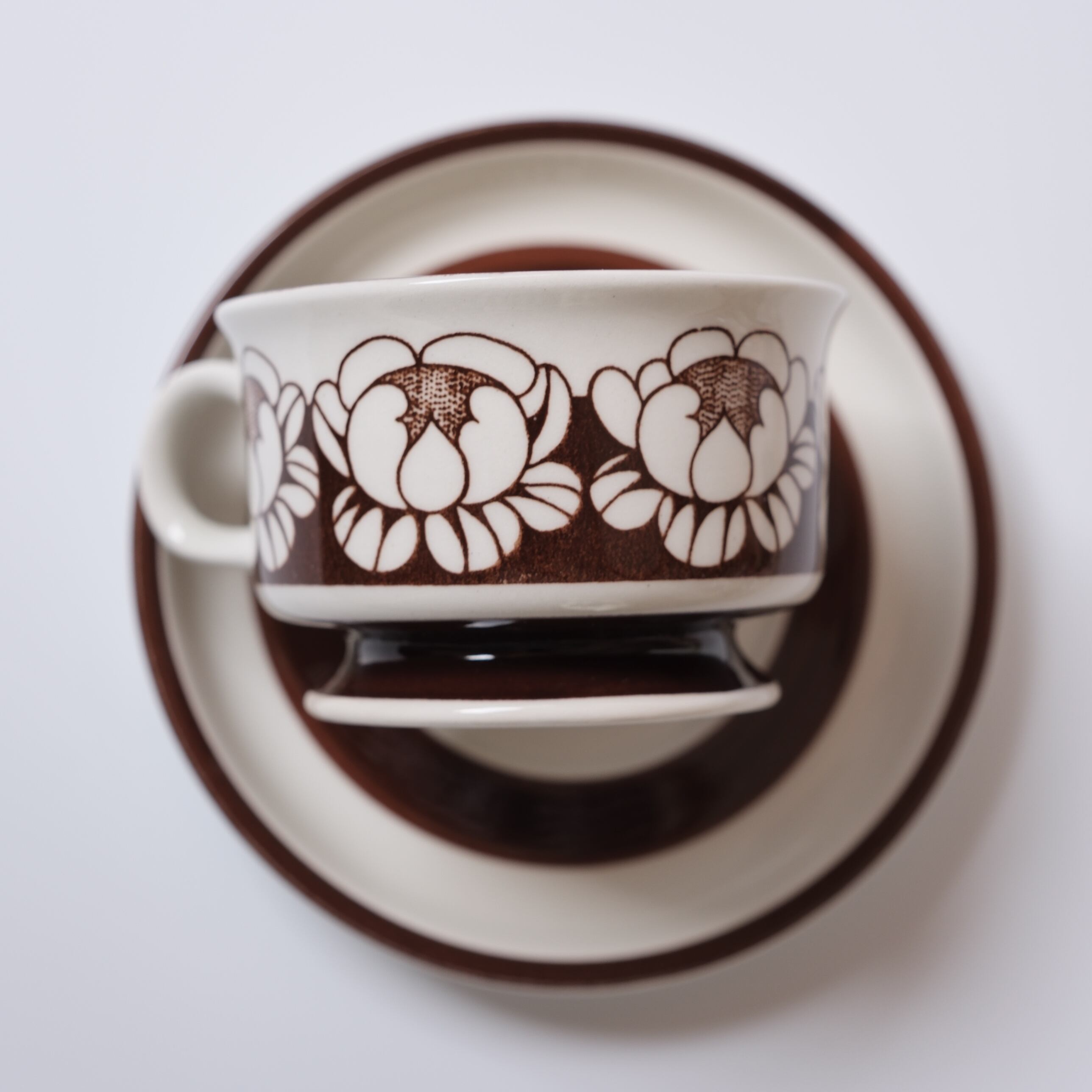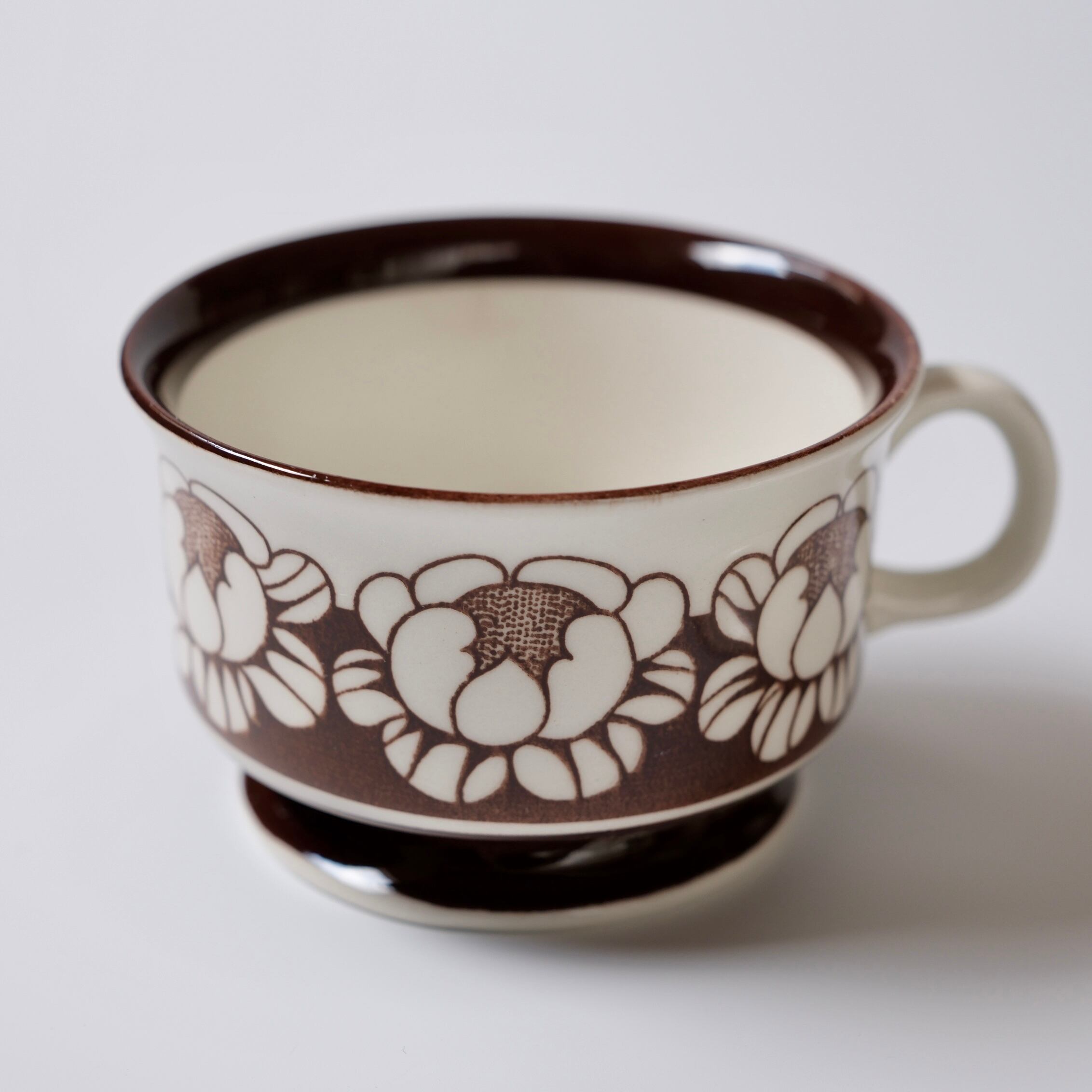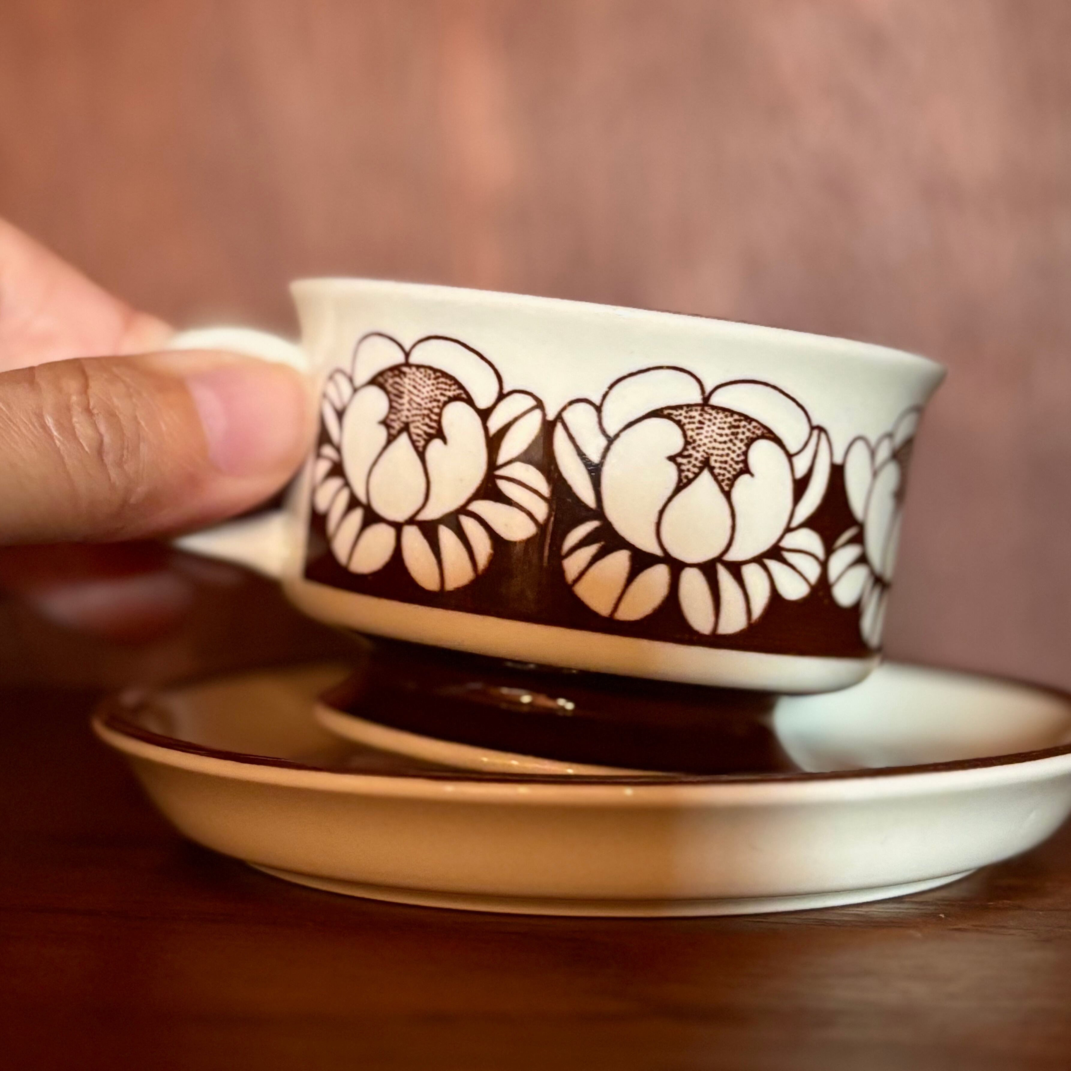 花模様が整然と並ぶ姿は、まるでカップの上で小さな舞踏会が開かれているかのようです。